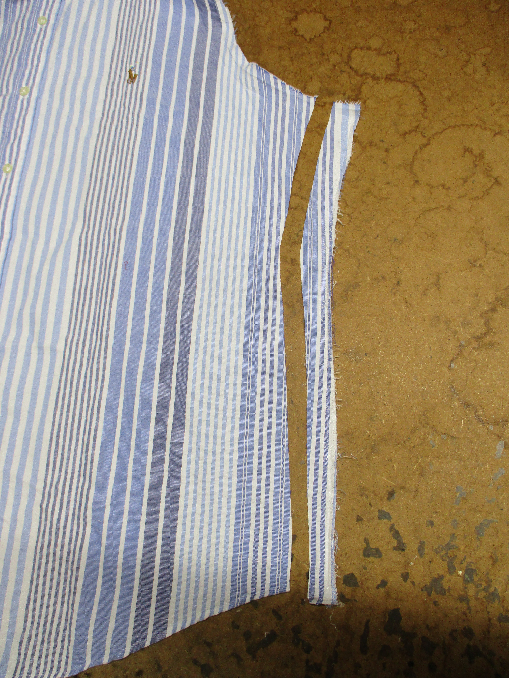 5枚目は前身ごろの脇から裾のサイドの生地をカットした写真です。