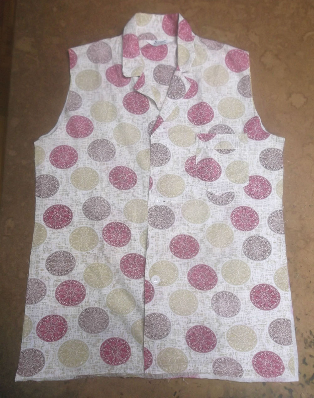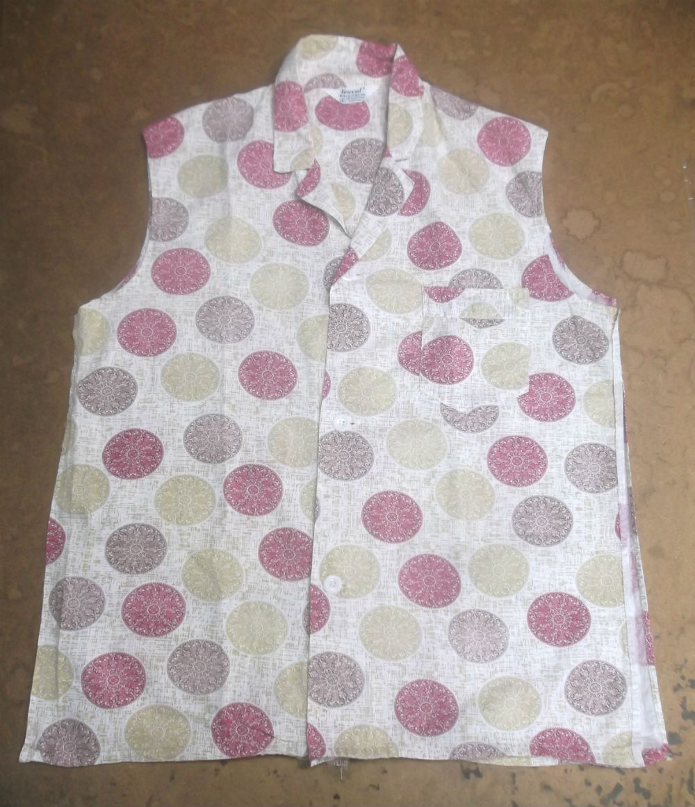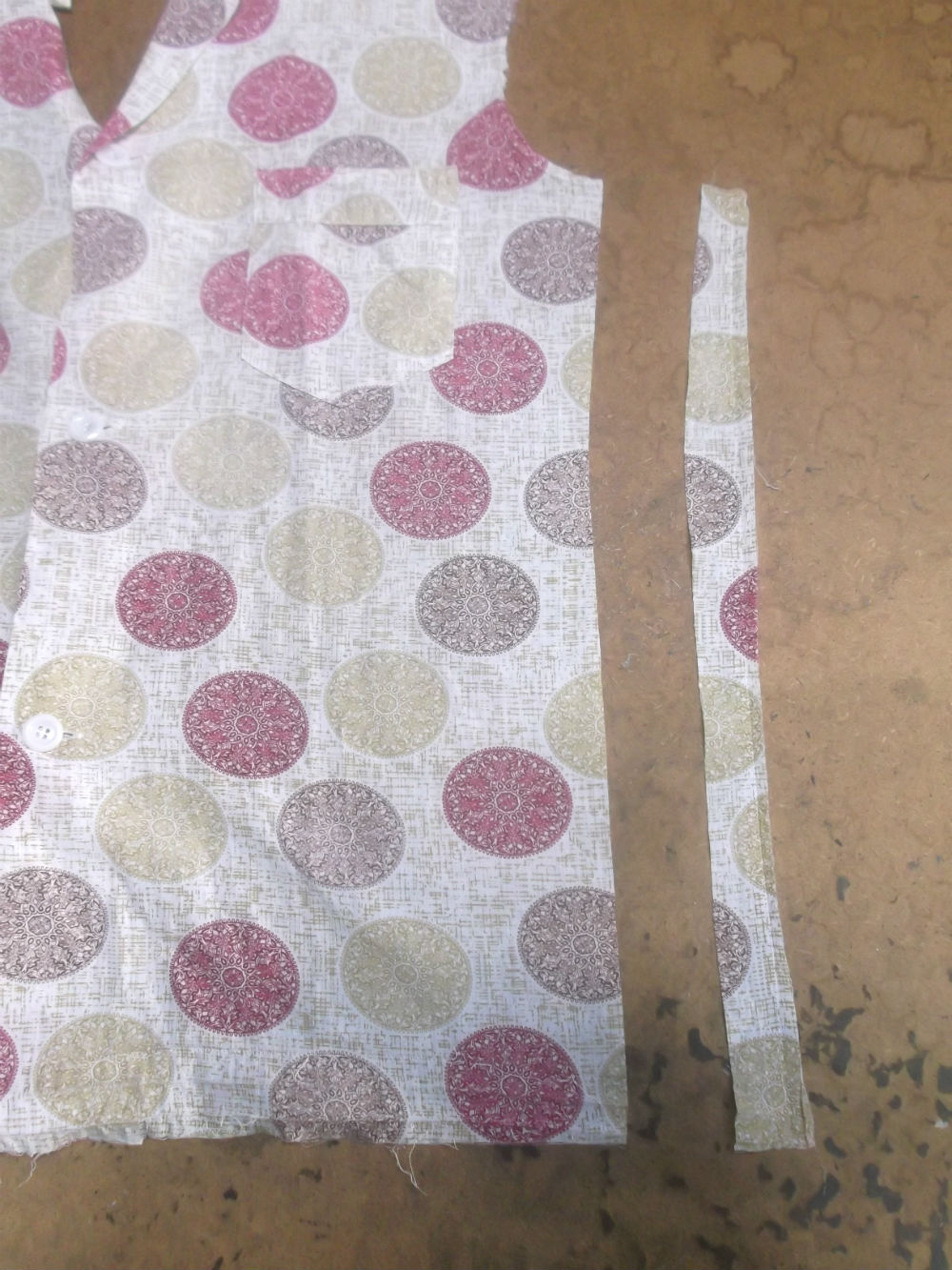 10枚目はシャツの胴体の着丈以外の肩幅と身幅と裾幅に生地を見本に合わせてカットした後です。