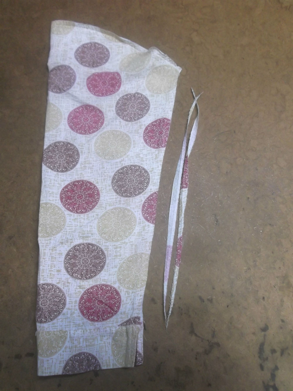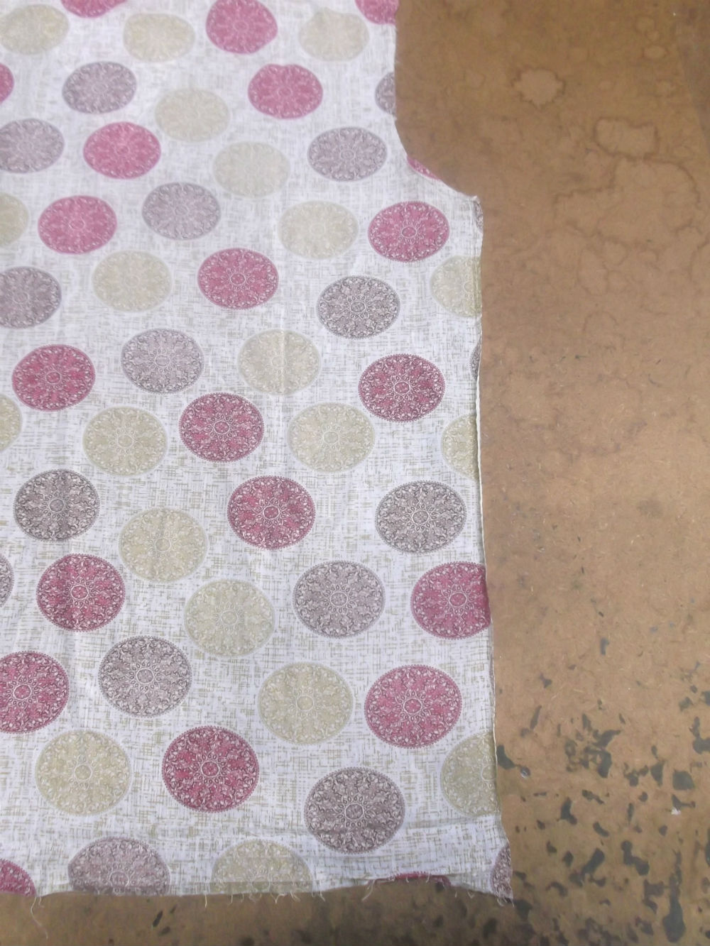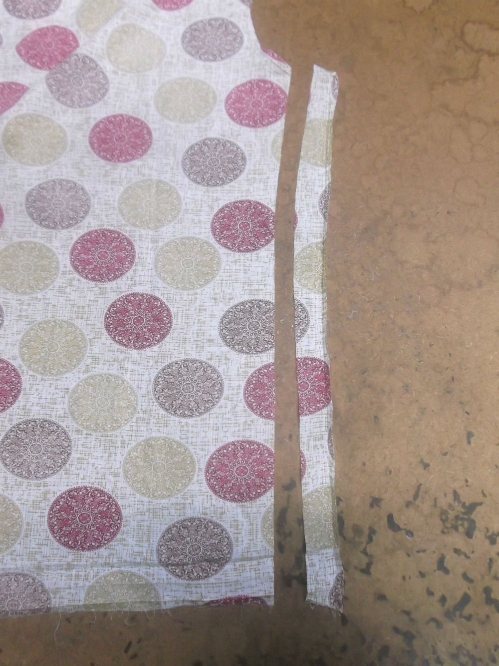 5枚目は脇から裾のサイドの生地を見本の幅に合わせてカットした後の写真です。