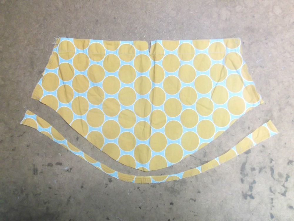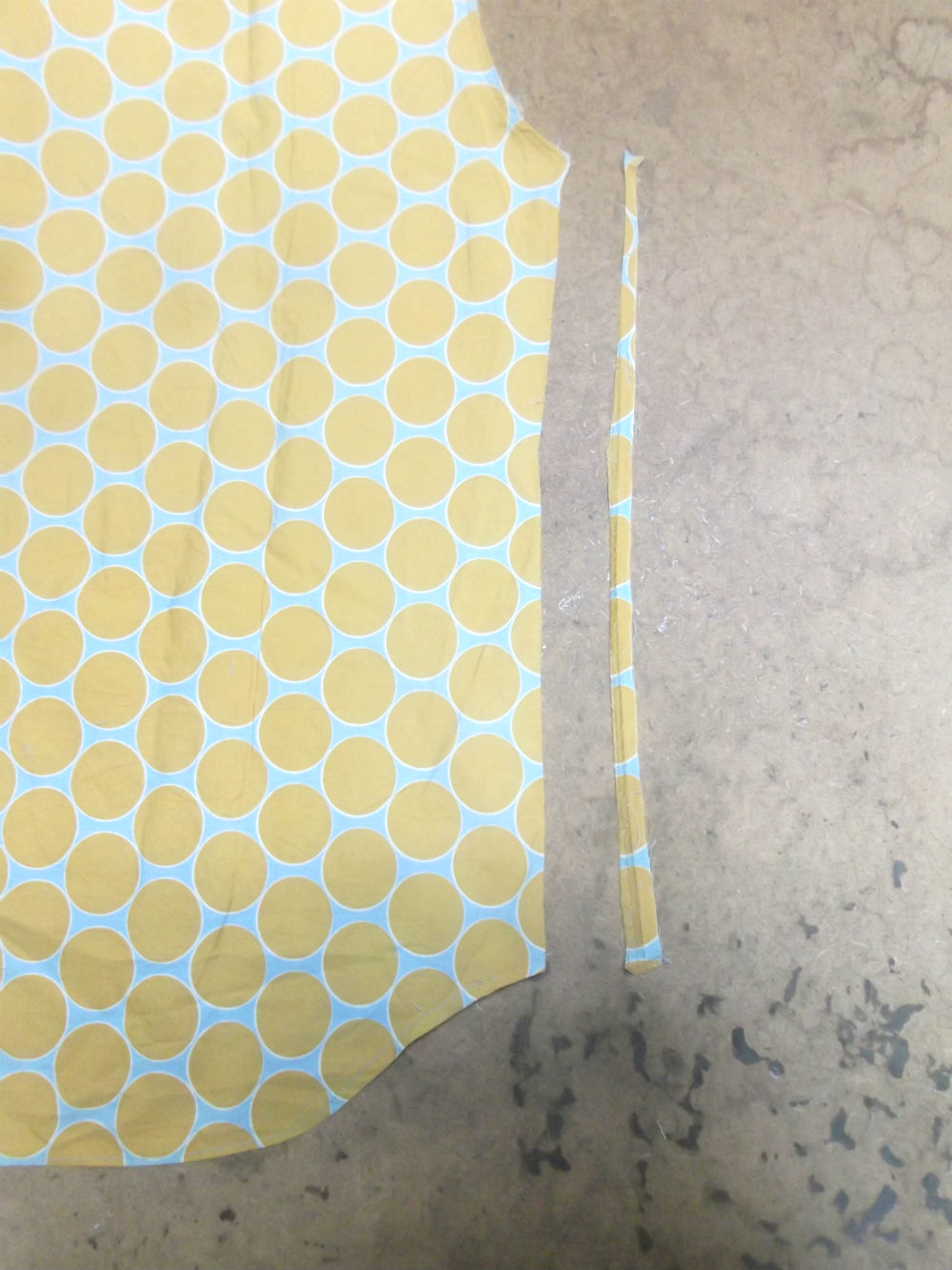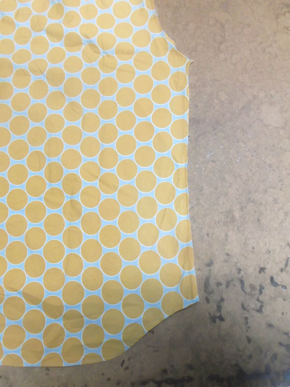 5枚目は前身ごろの脇から裾の生地を見本の幅に合わせてカットした後の写真です。