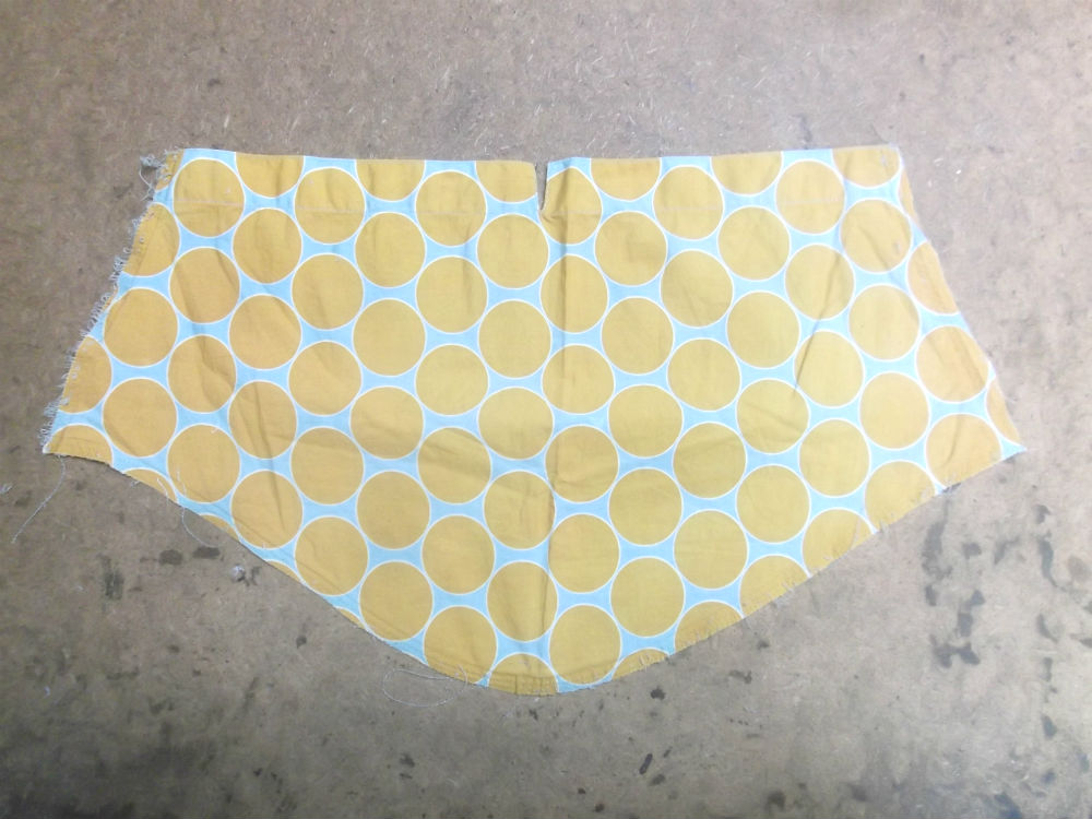 7枚目は後ろ見ごろのサイドの生地を見本の幅に合わせてカットした後です。