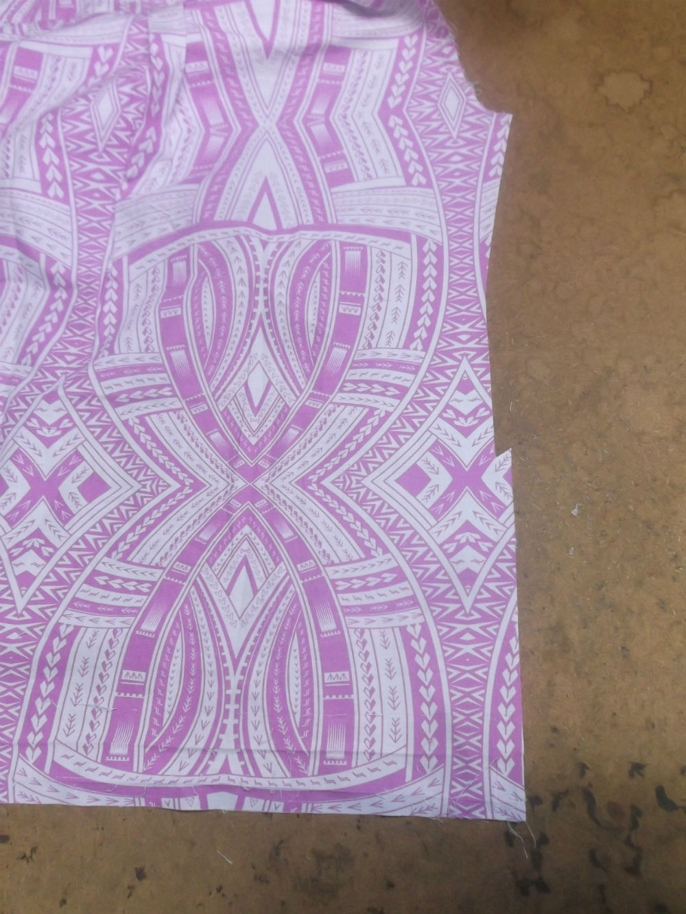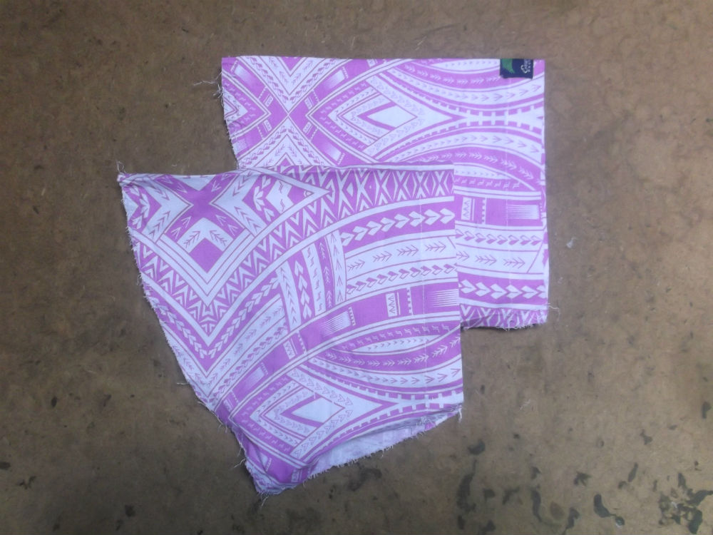 13枚目は見本の幅に合わせて生地をカットした後の袖のパーツの写真です。