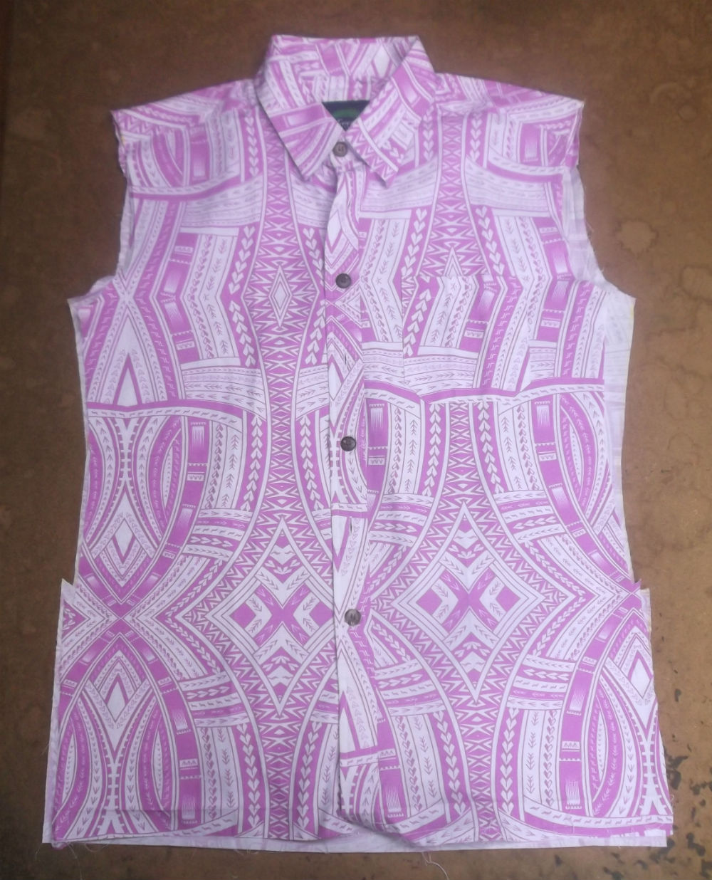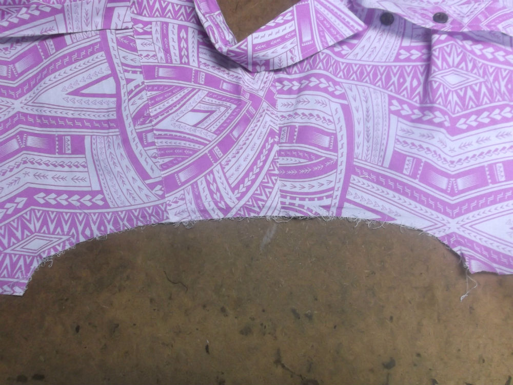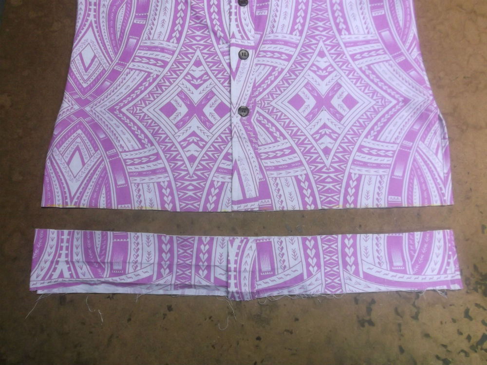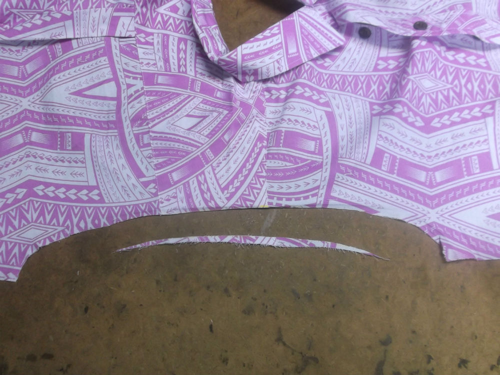 5枚目は前身ごろの脇から裾のサイドの生地をカットした後の写真です。