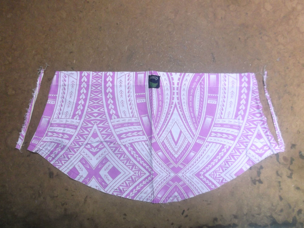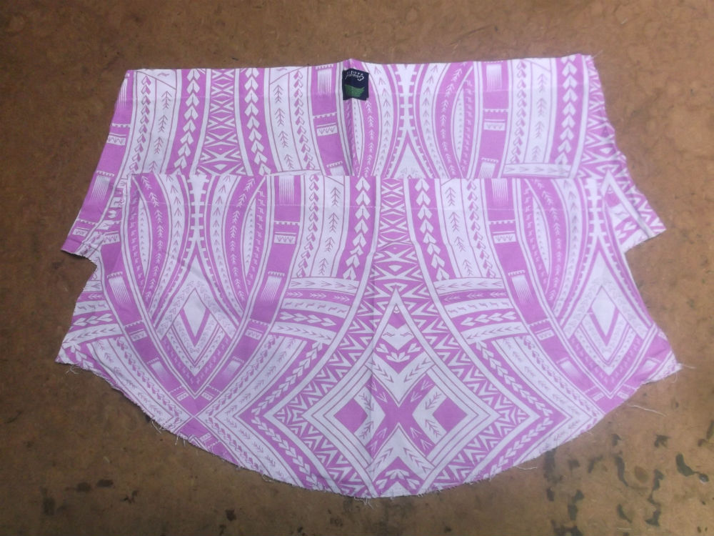 7枚目は後ろ見ごろの脇から裾のサイドの生地をカットした後の写真です。