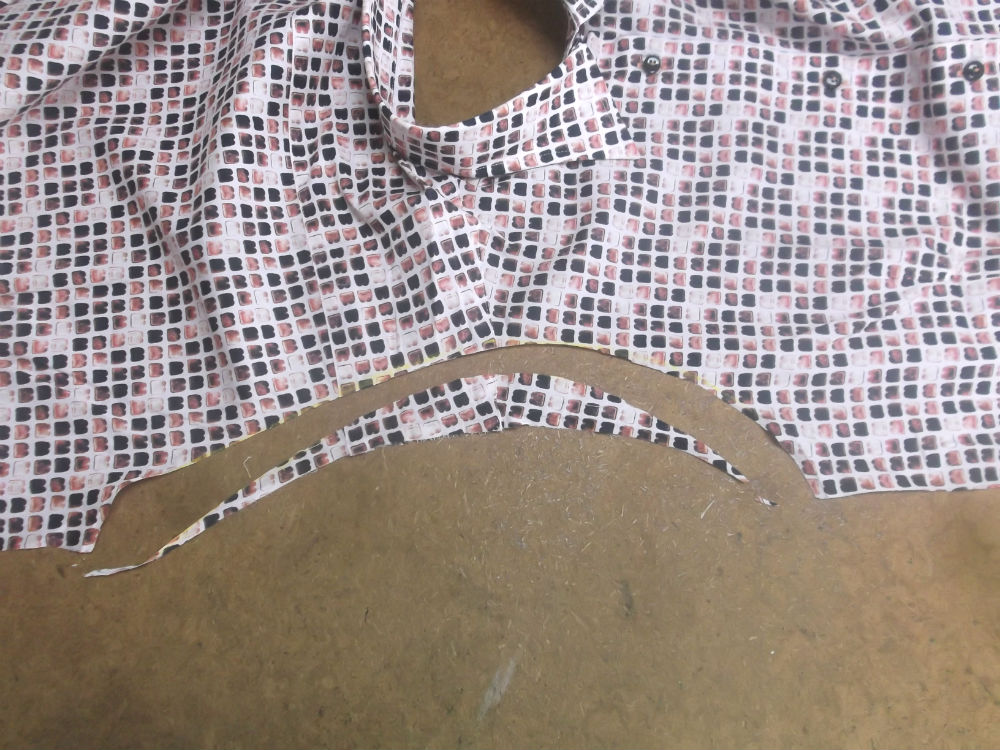 5枚目は胴体の前身ごろの脇から裾のサイドの生地をカットした後の写真です。