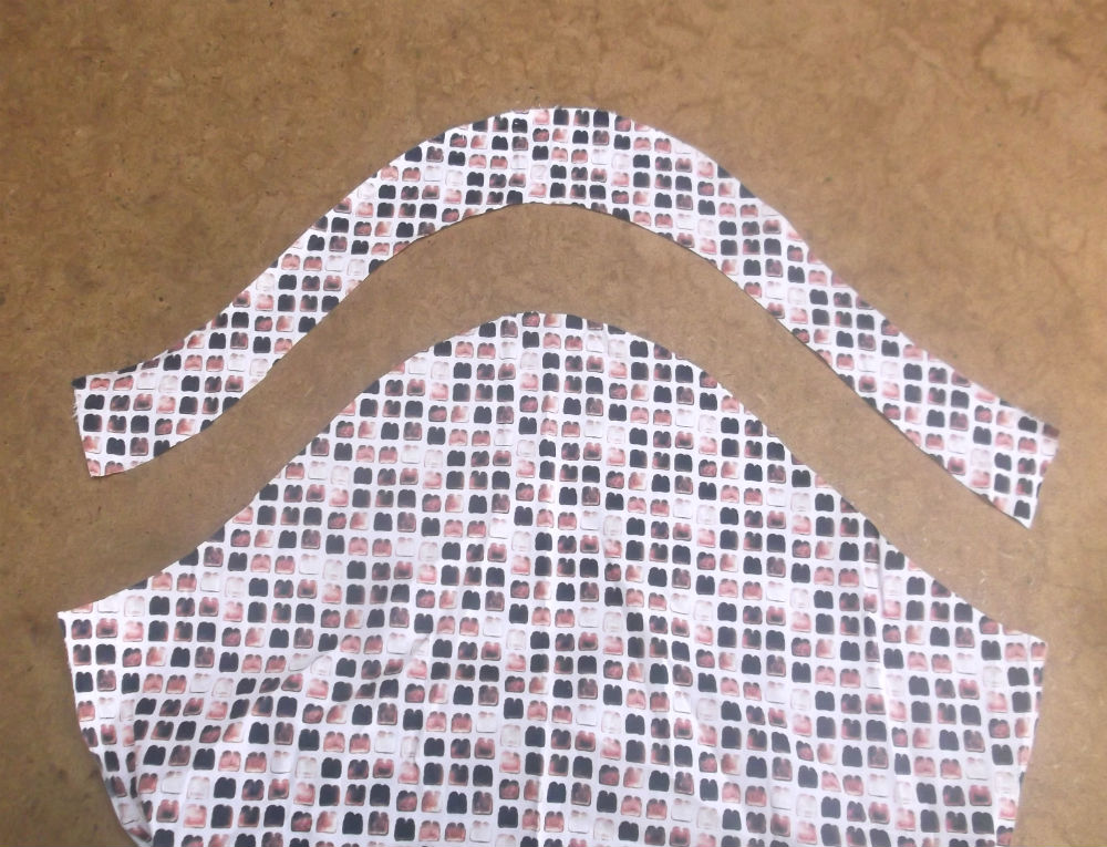 4枚目は胴体の前身ごろの脇から裾のサイドの生地をカットしていきます。