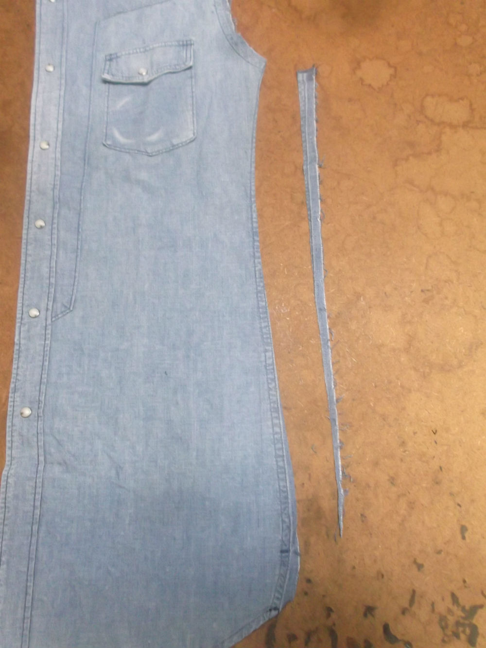 4枚目は胴体の前身ごろの脇から裾のサイドの生地をカットした後の写真です。