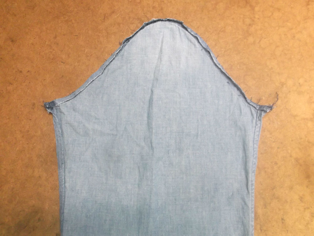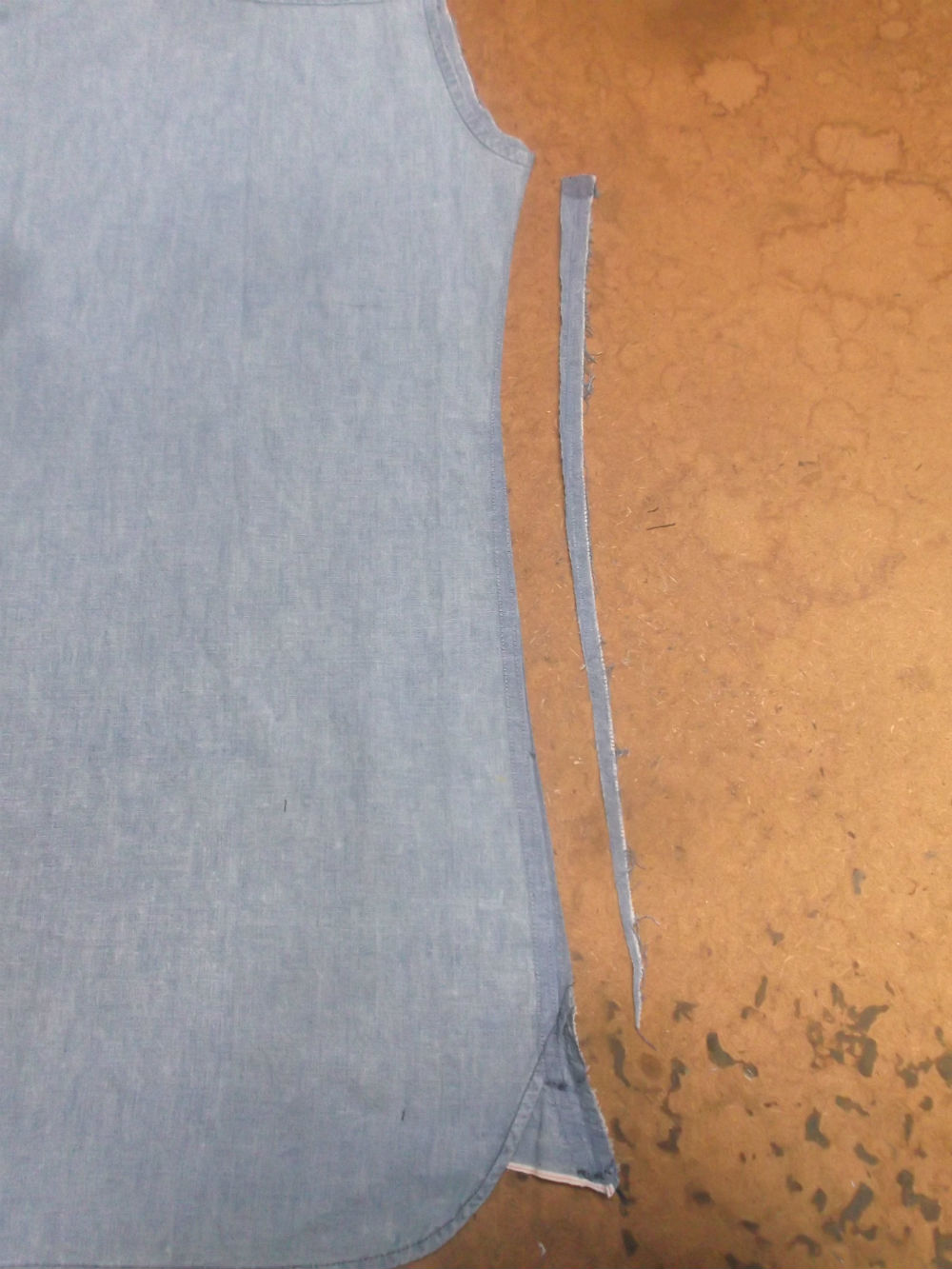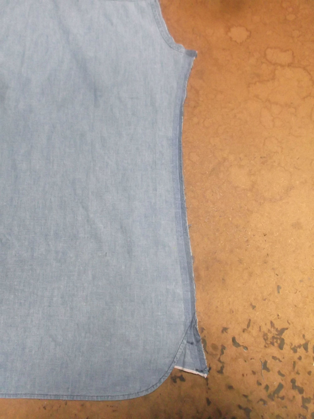 6枚目は後ろ見ごろの脇から裾のサイドの生地をカットした後の写真です。