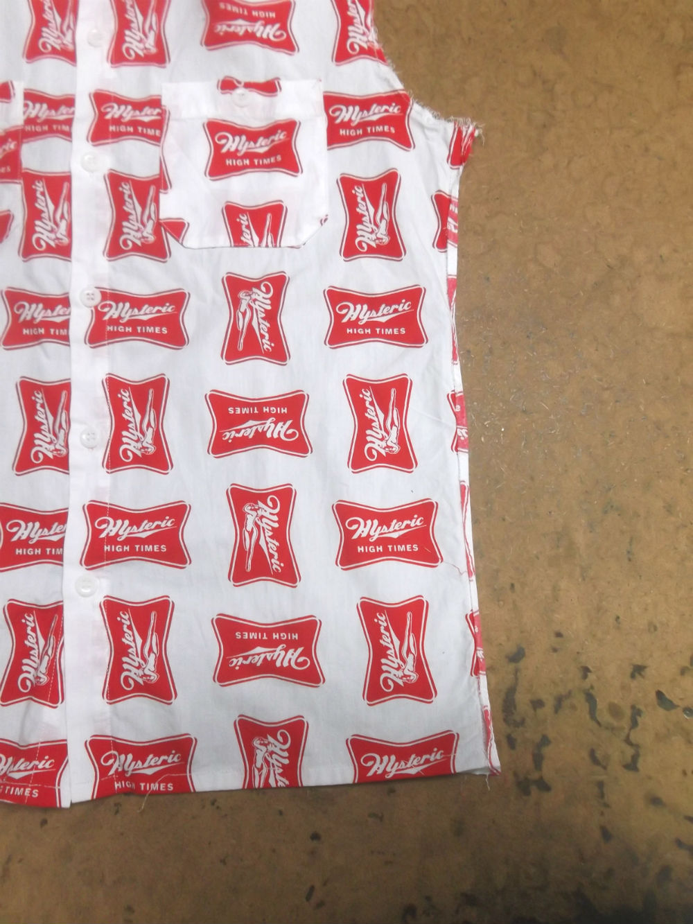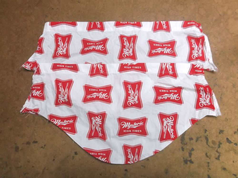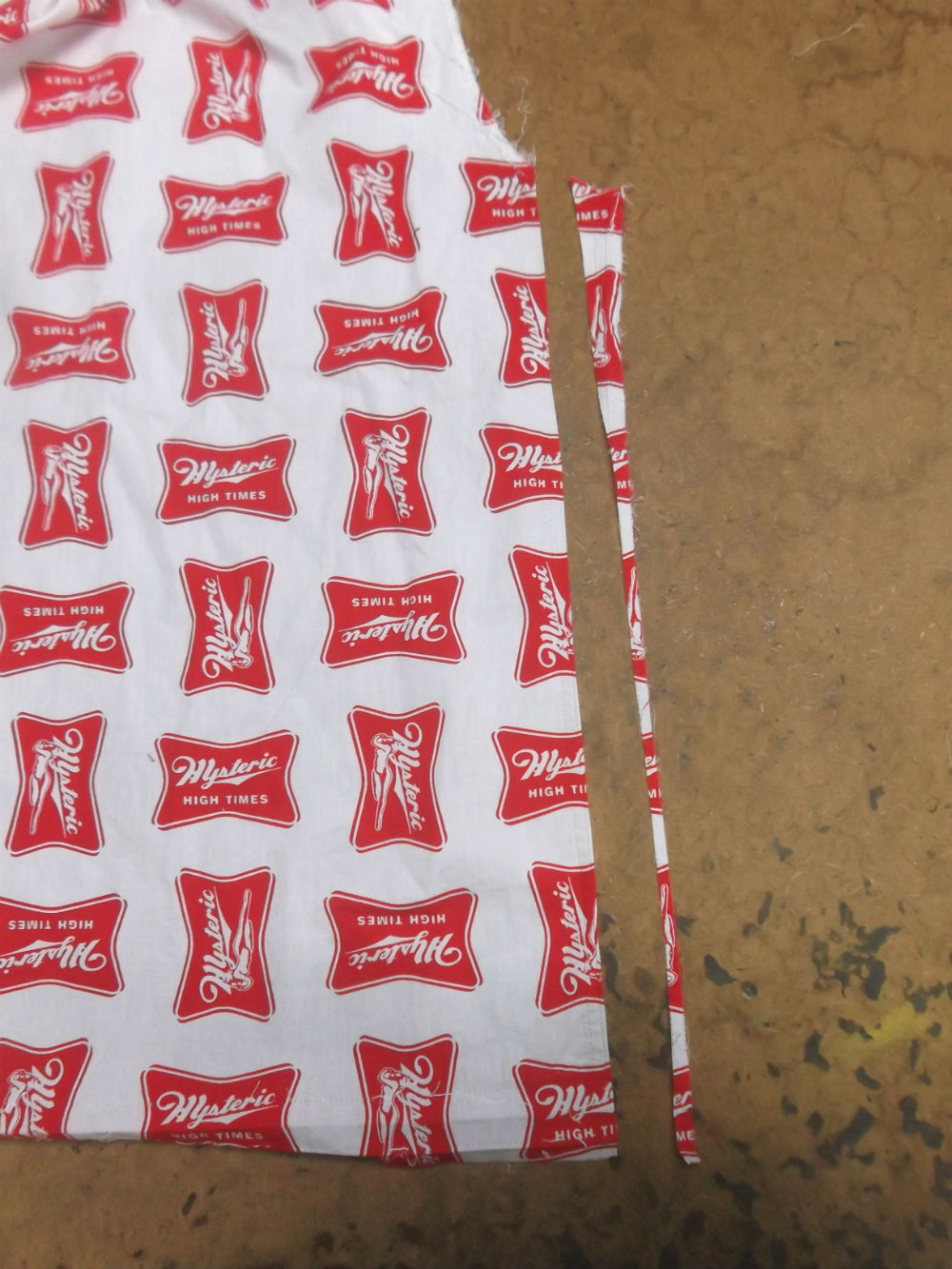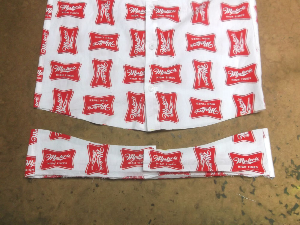 10枚目はシャツの胴体の着丈以外の肩幅、身幅、裾幅の生地をカットした後の写真です。