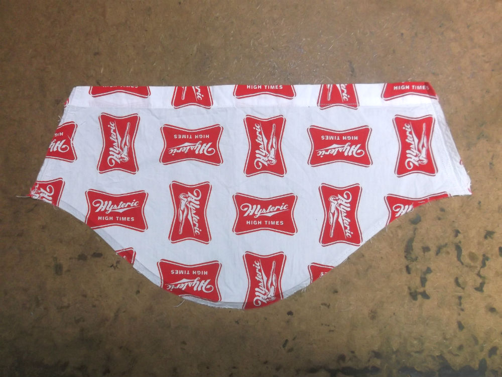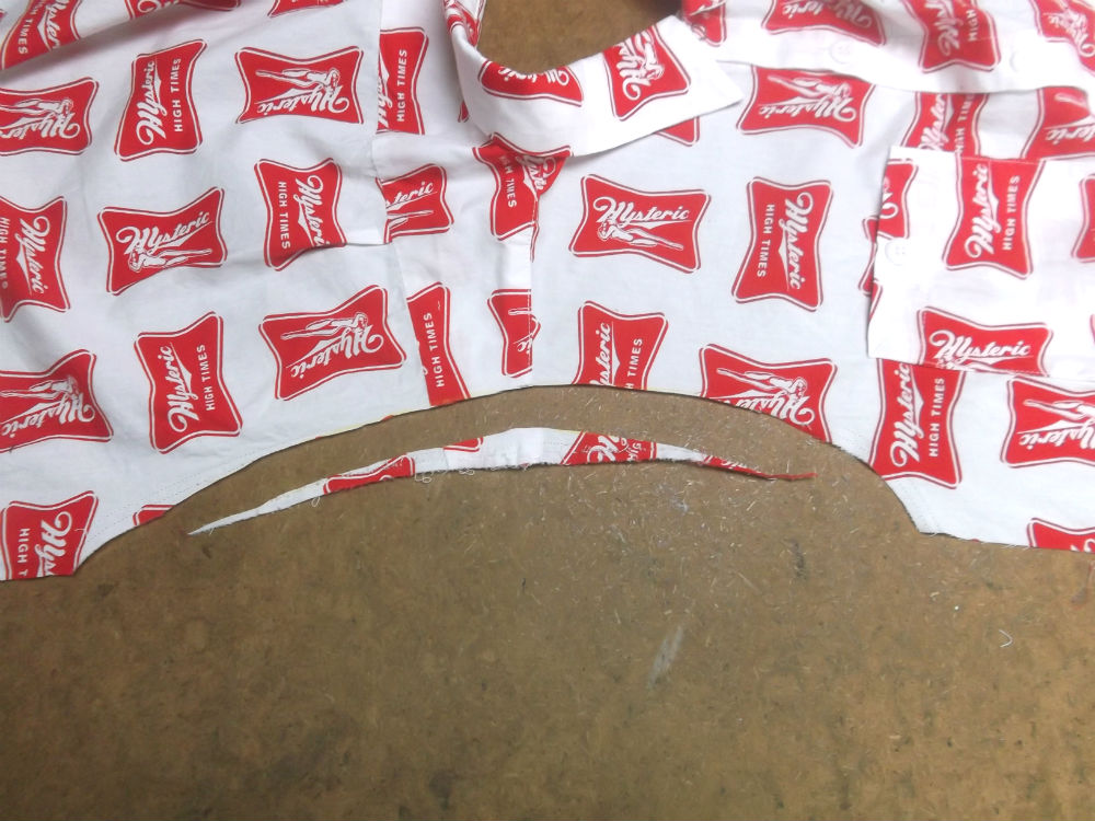 5枚目は前身ごろの脇から裾のサイドの生地をカットした後の写真です。
