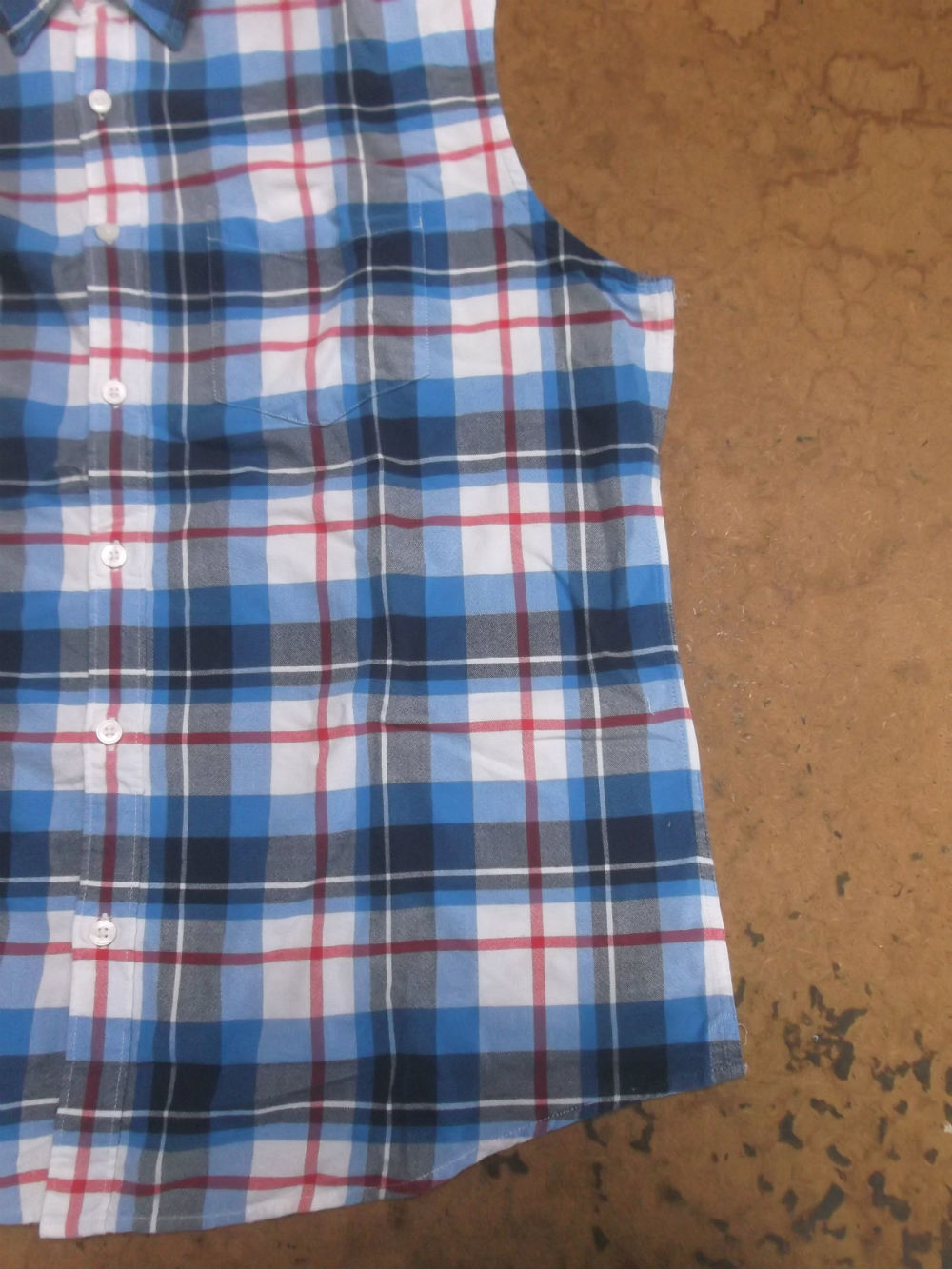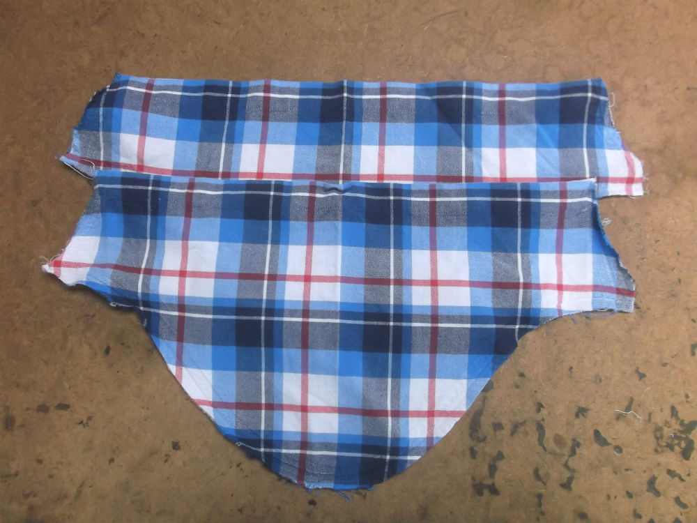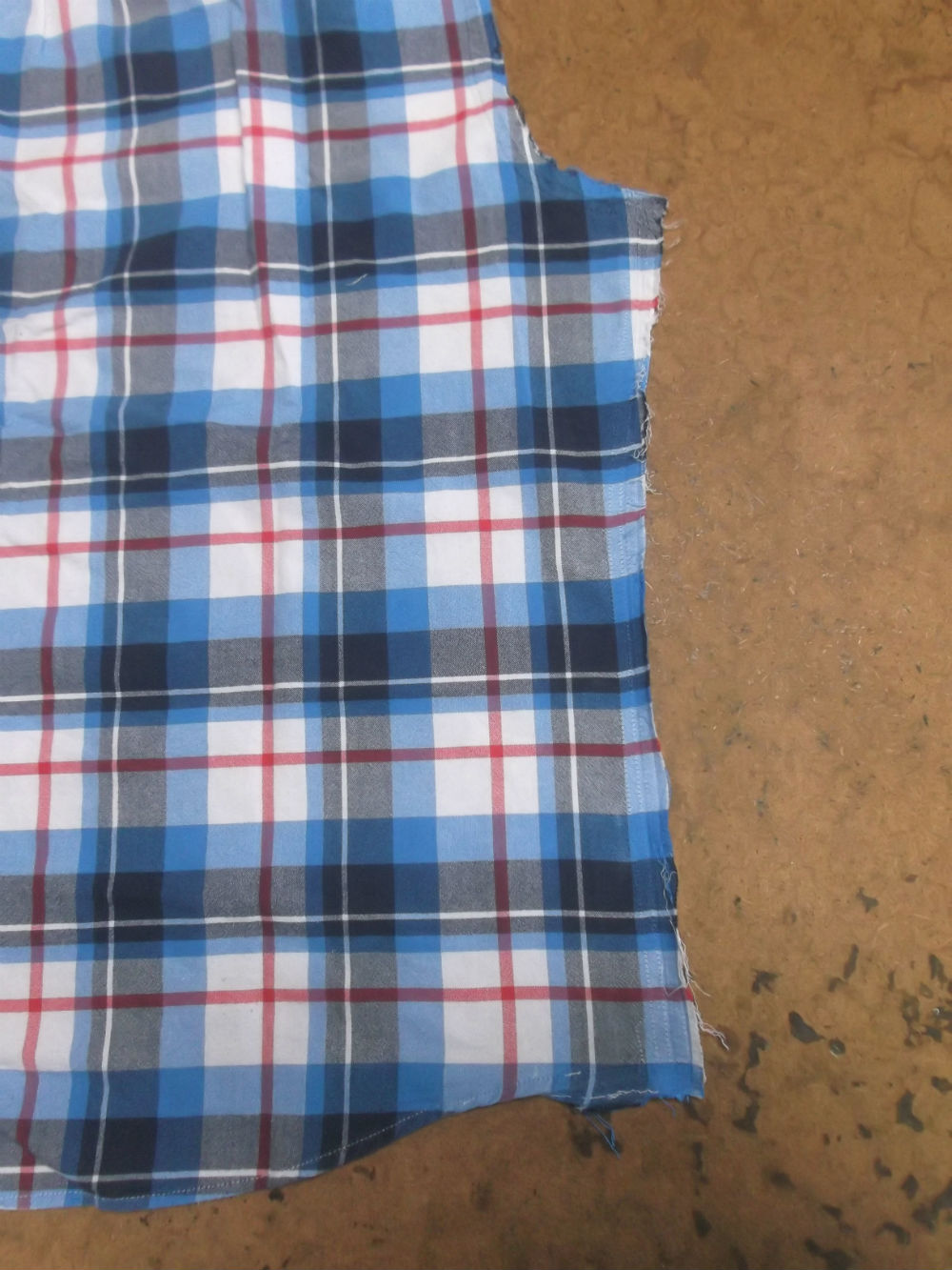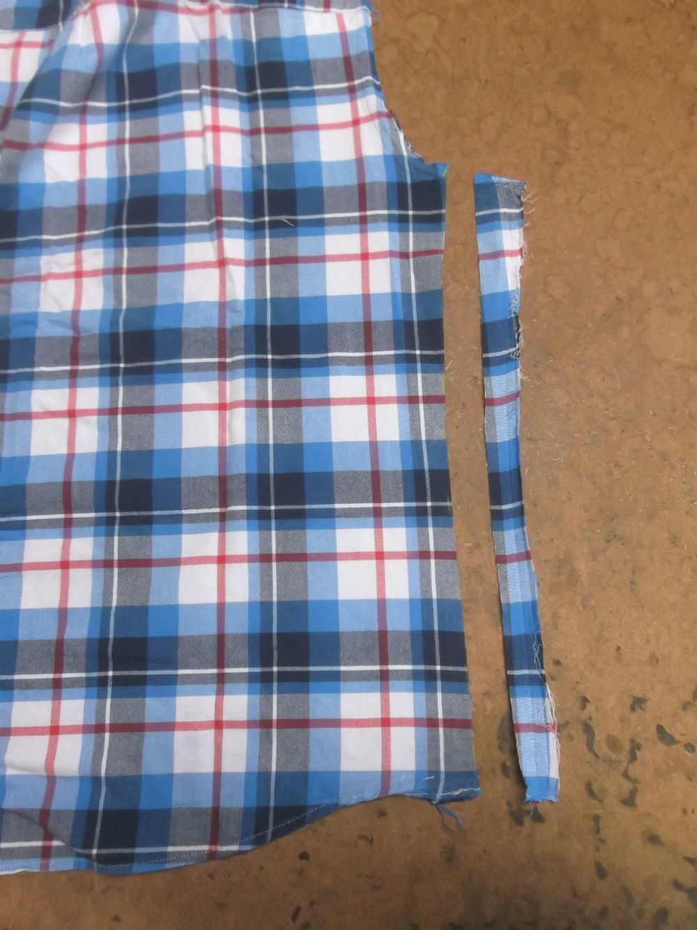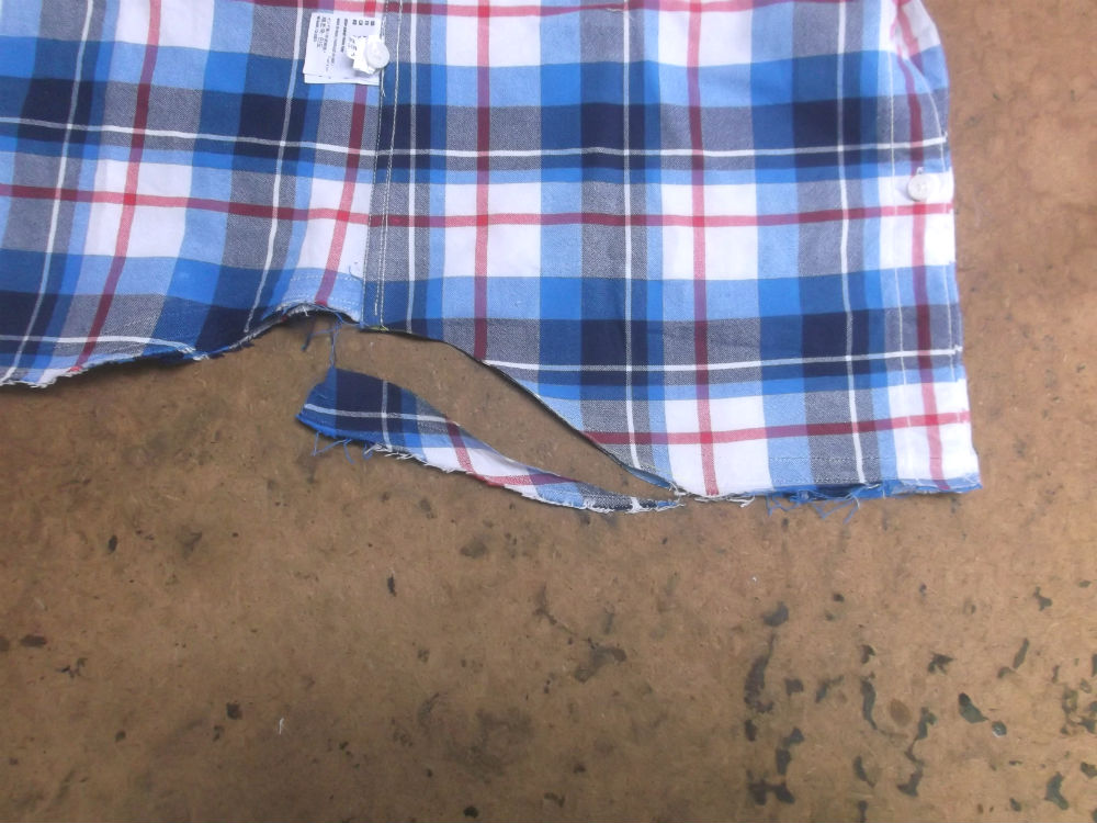 5枚目は前身ごろの脇から裾のサイドの生地をカットした後の写真です。