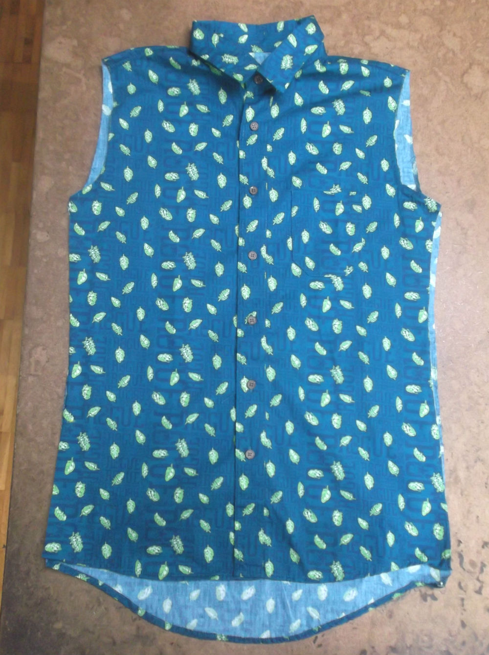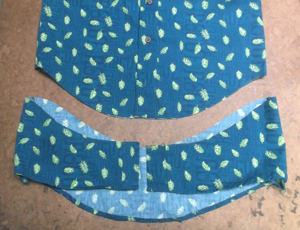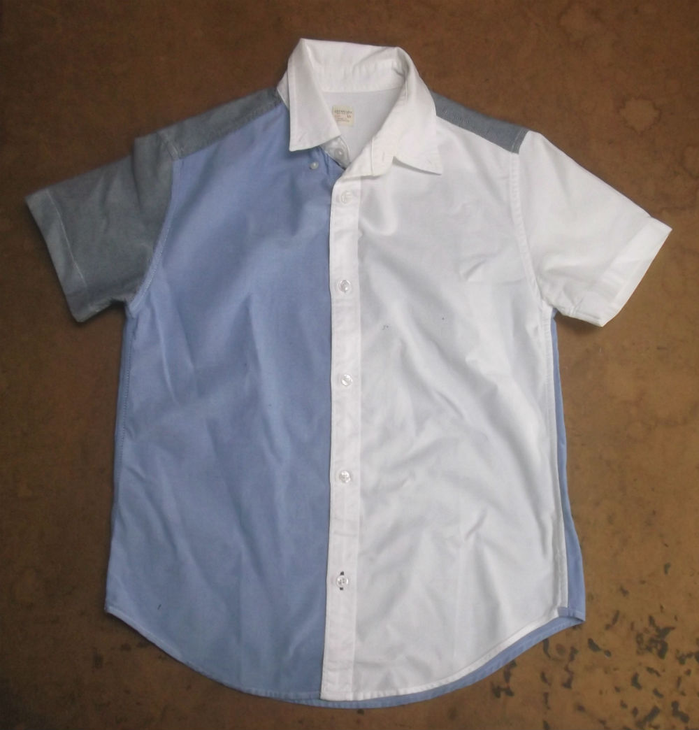 8枚目はシャツの胴体を着丈以外の肩幅、身幅、裾幅の生地をカットした後の写真です。
