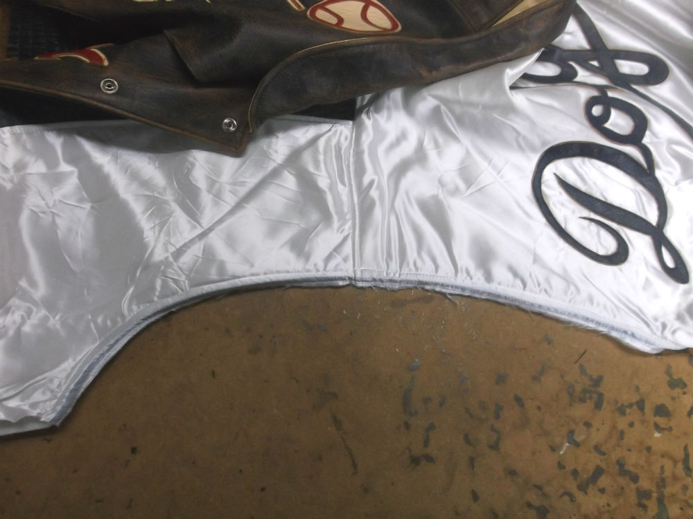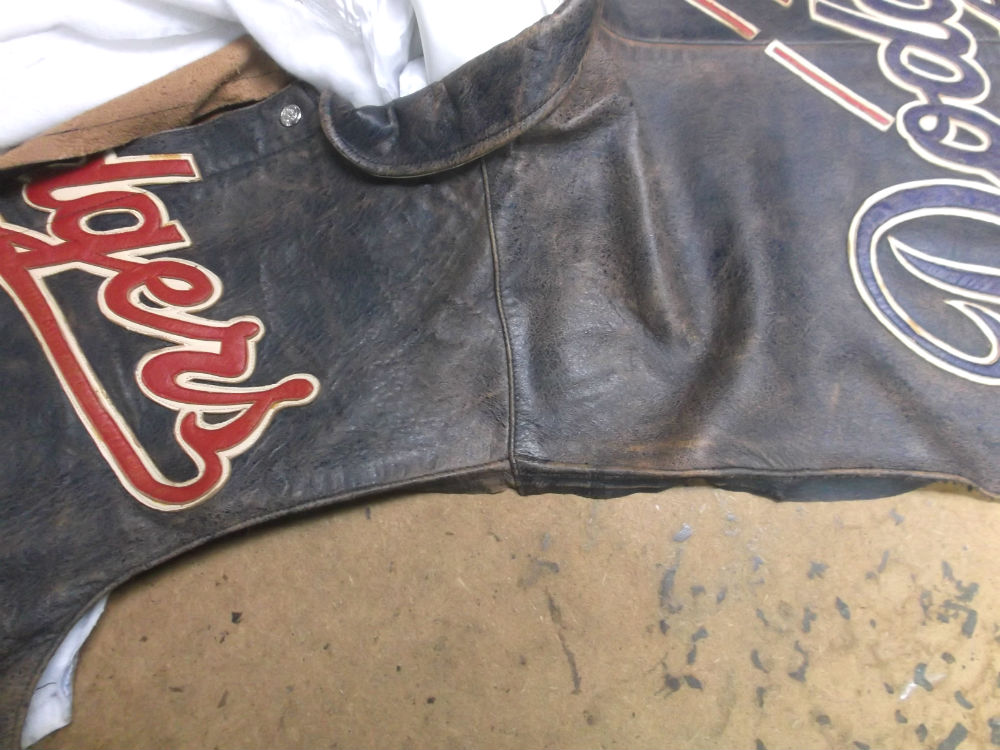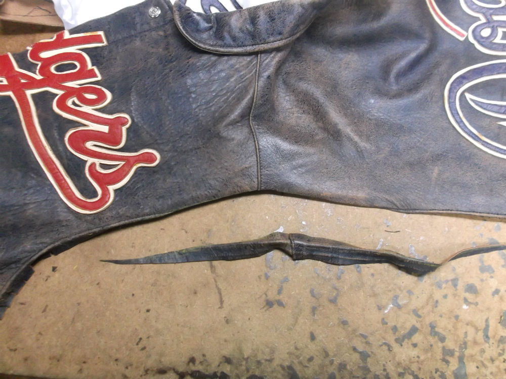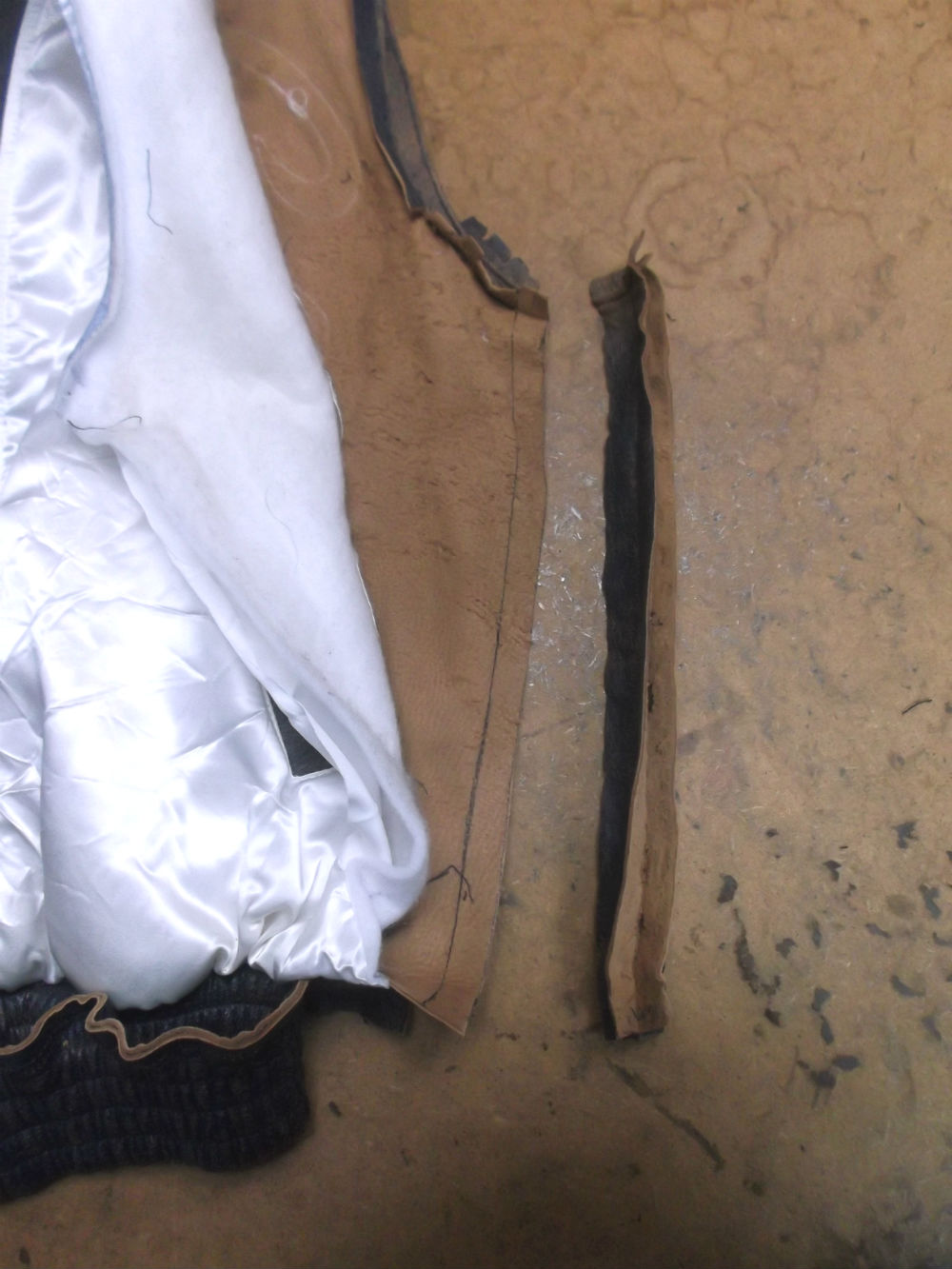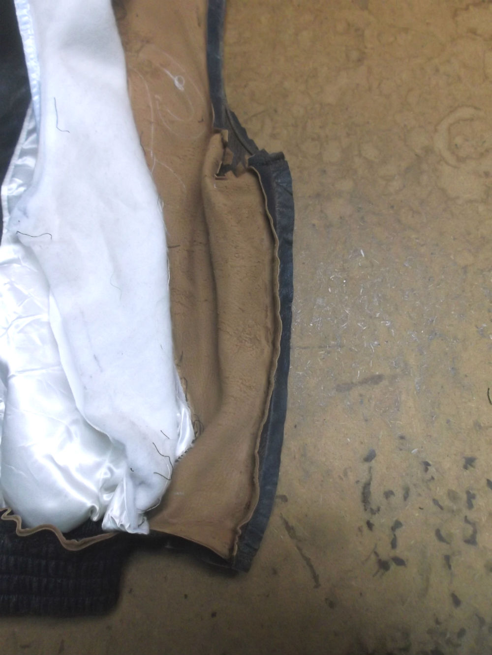 16枚目は脇から袖先にかけてレザーをカットした後の写真です。