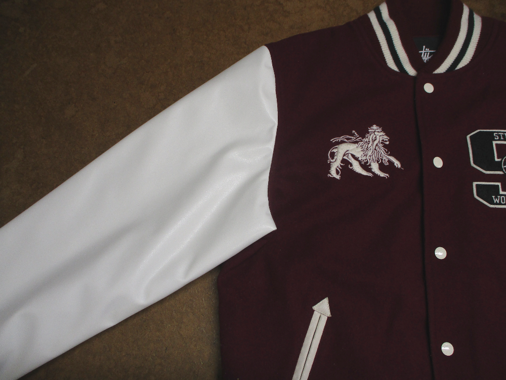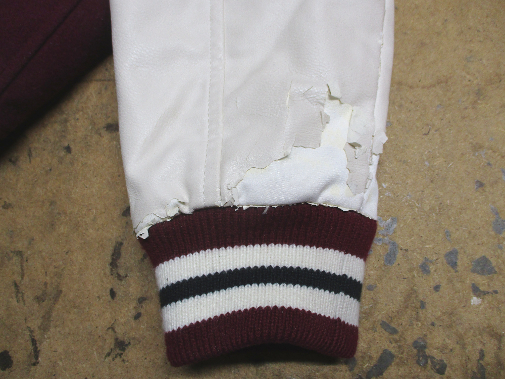 1枚目は左右の袖のパーツの合革の表面が剥がれだしてるステューシーのスタジャンです。