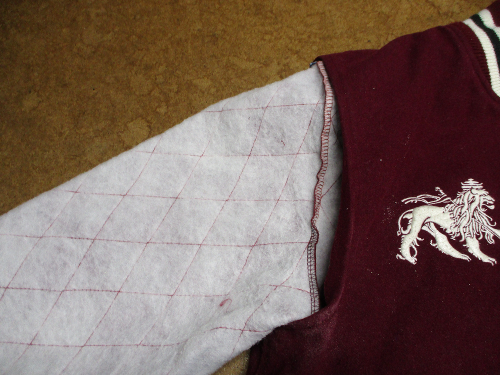13枚目はパーツパーツを組み直してリブニットを取り付けてスタジャンに組み直していきます。