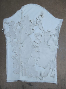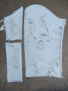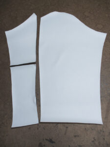 9枚目は新しい合皮の生地をカットして作った袖のパーツの写真です。