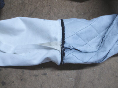 4枚目は袖のリブニットを取り外すのに反対側にひっくり返した縫い目付近の写真です。