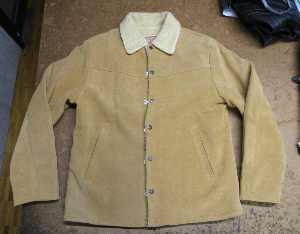 1枚目は北海道からの郵送のお客さんの長い袖丈を短くしていく前のスウェードジャケットです。