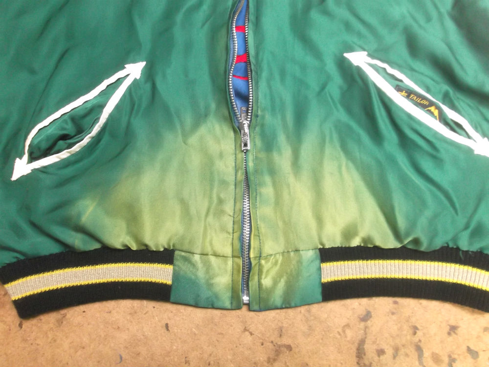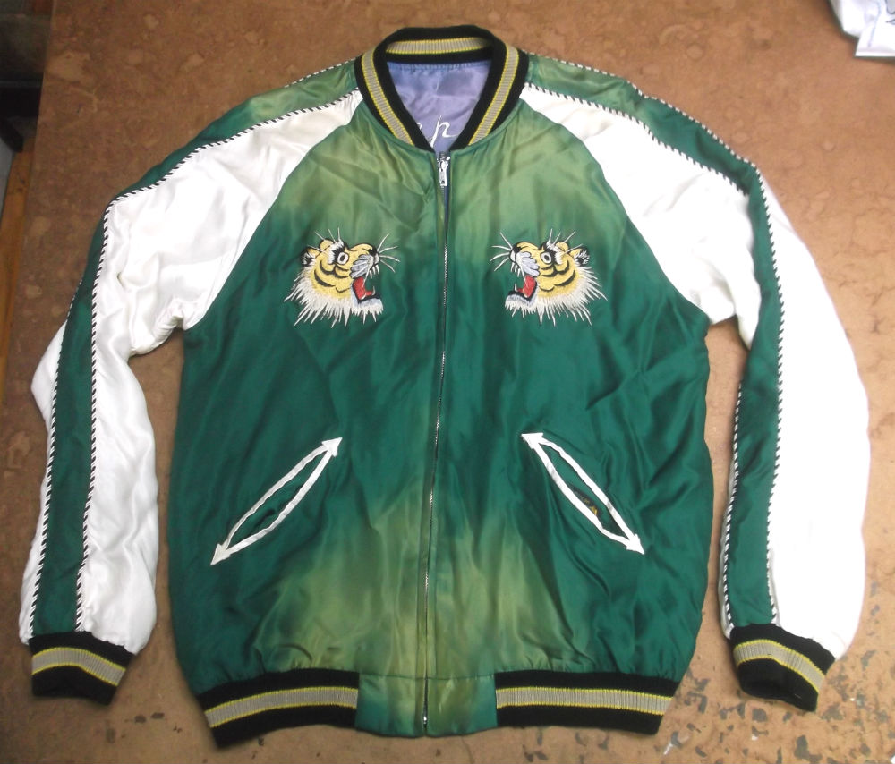 1枚目は福井県からの郵送のお客さんの着丈を短くしていく前のスカジャンです。