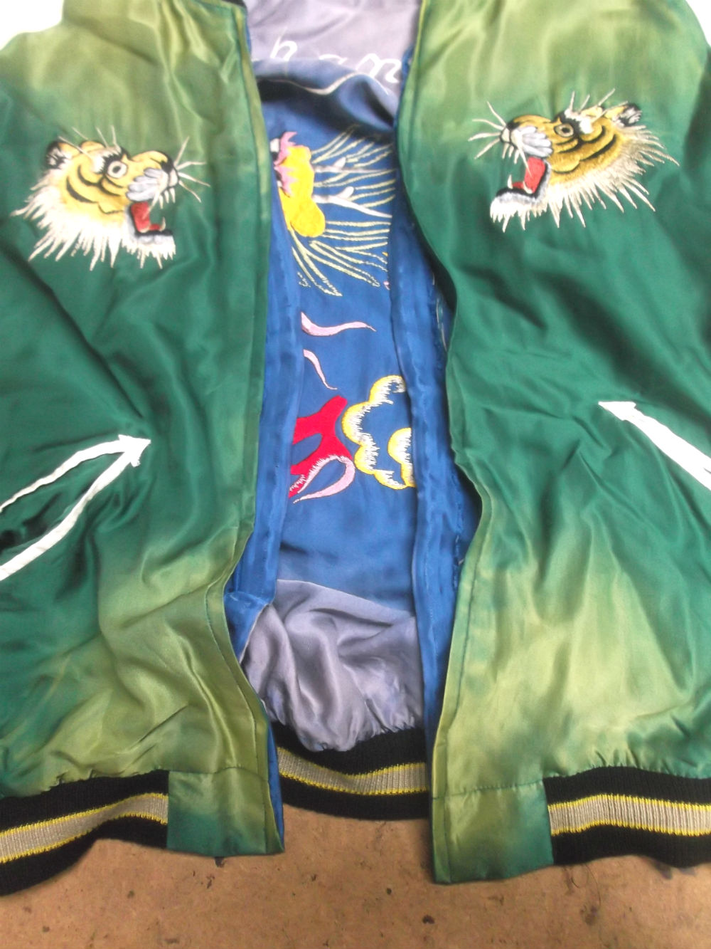スカジャンはリバーシブルなので表も裏もありませんがジャケットは裏地が付いてますので