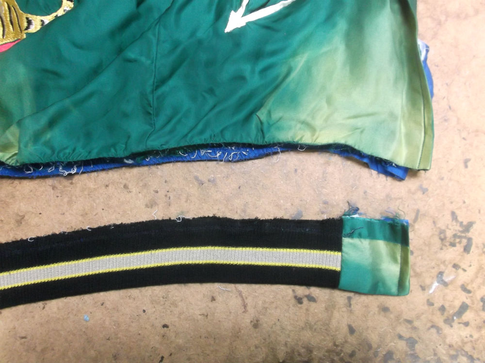 7枚目はスカジャンの裾の生地をカットした後の写真です。