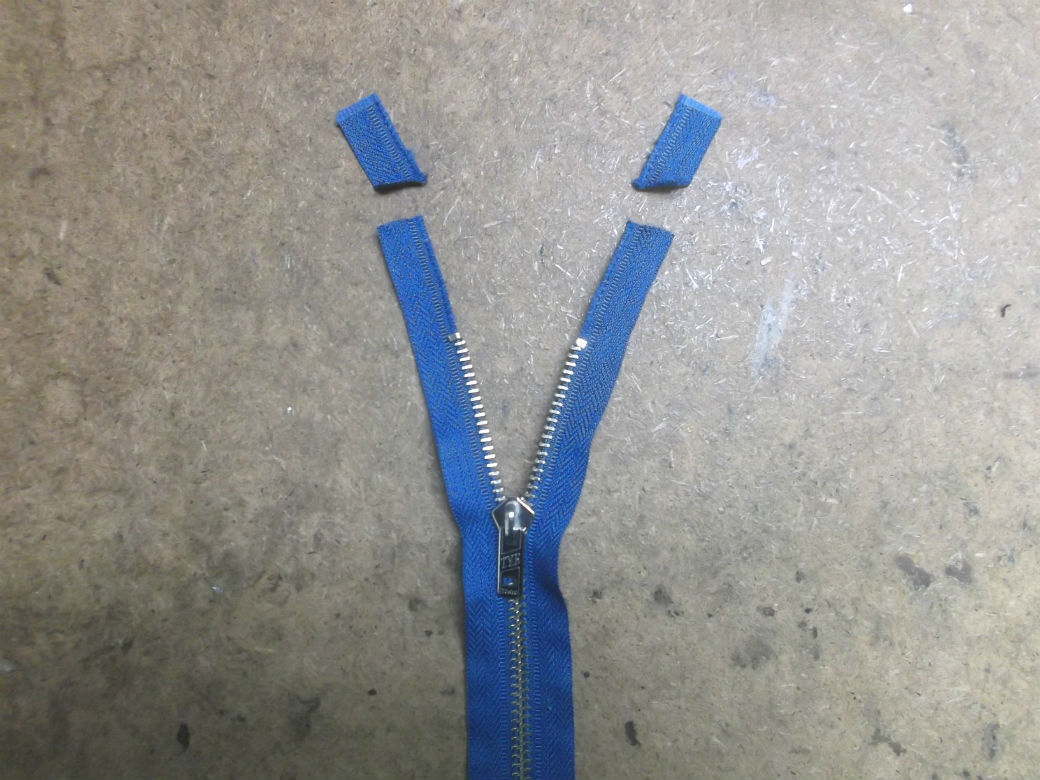 12枚目は着丈を短くした長さをカットした後のファスナーの写真です。