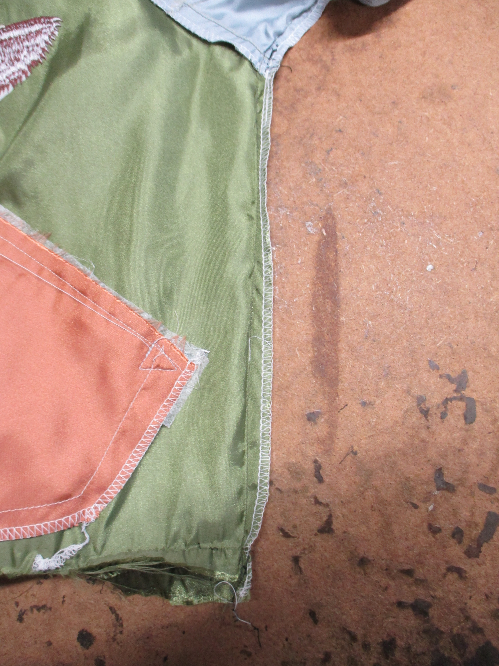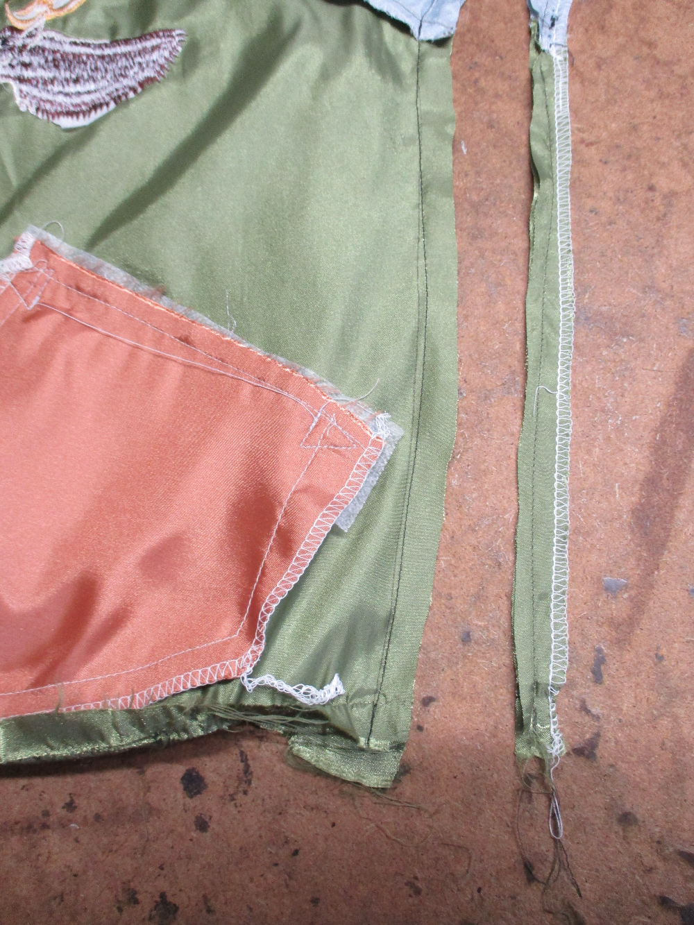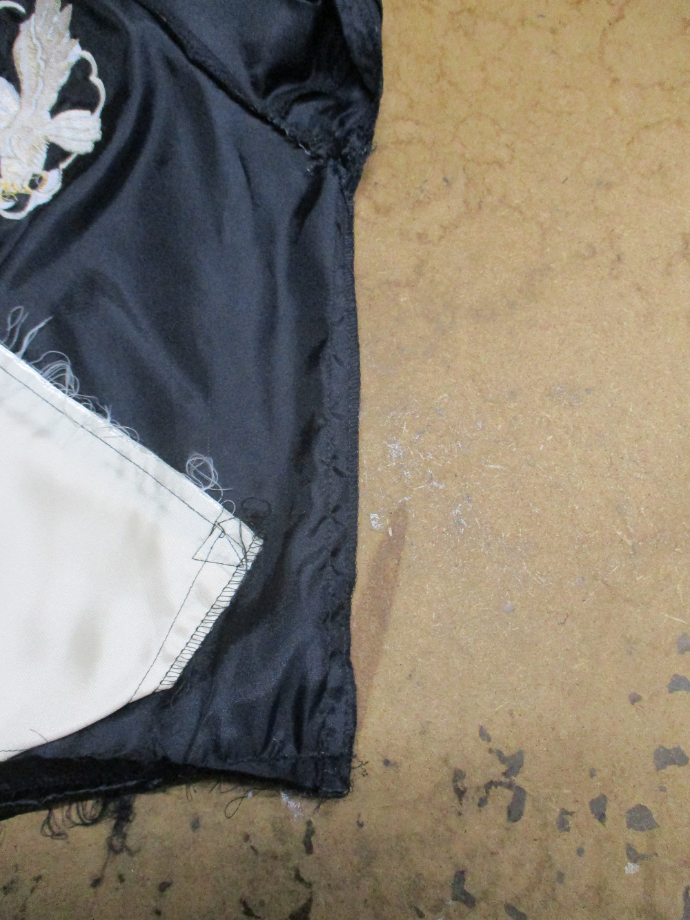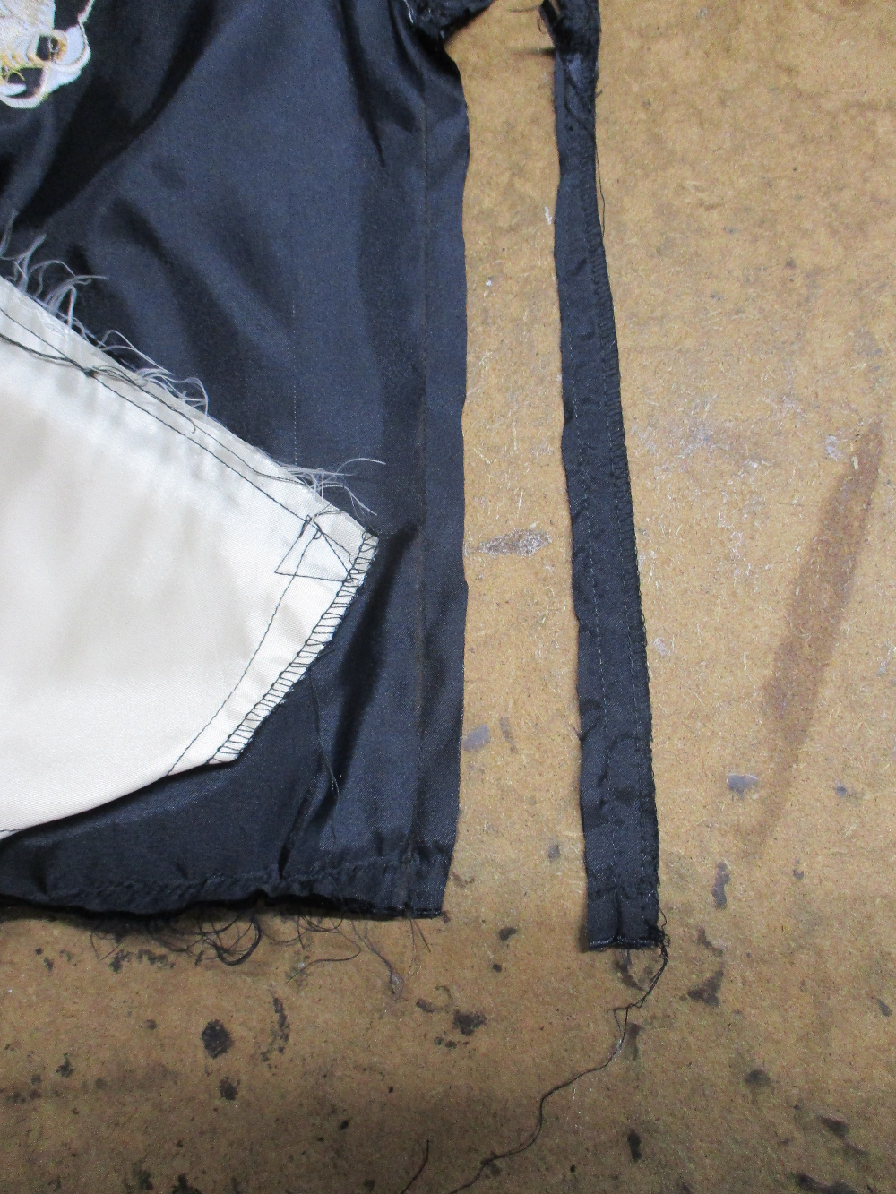 13枚目は表側の脇から裾のサイドの生地をカットした写真です。