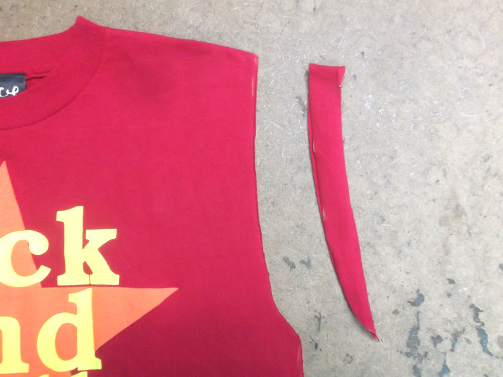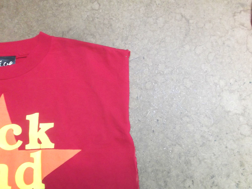 7枚目は見本のTシャツの幅に合わせてサイドの生地をカットした後の写真です。