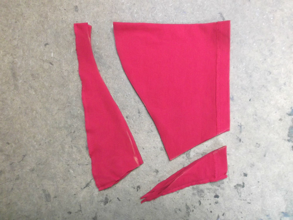 10枚目はTシャツの胴体の肩幅、身幅、裾幅、着丈を見本のサイズ感になる様に生地をカットした後の写真です。