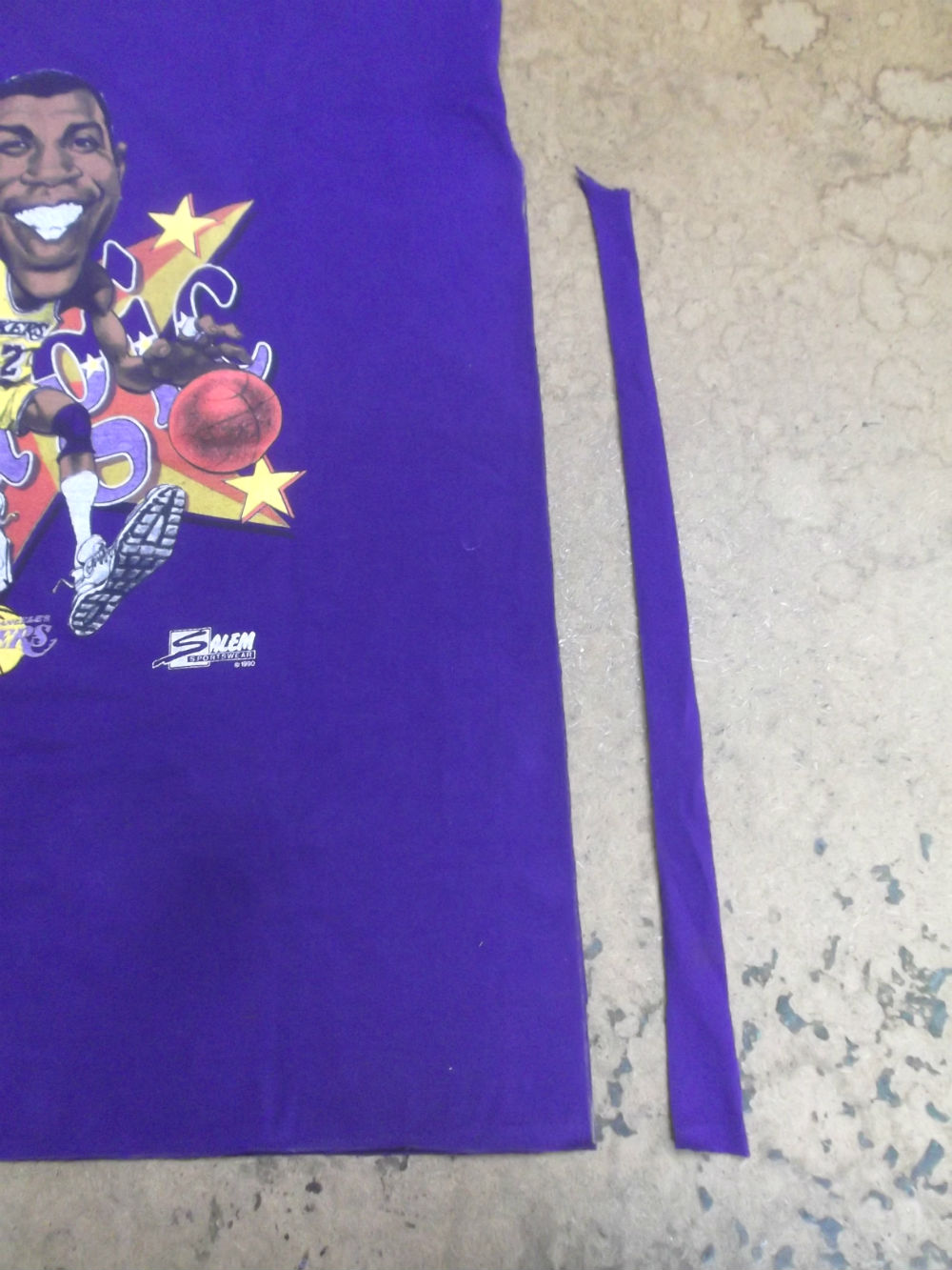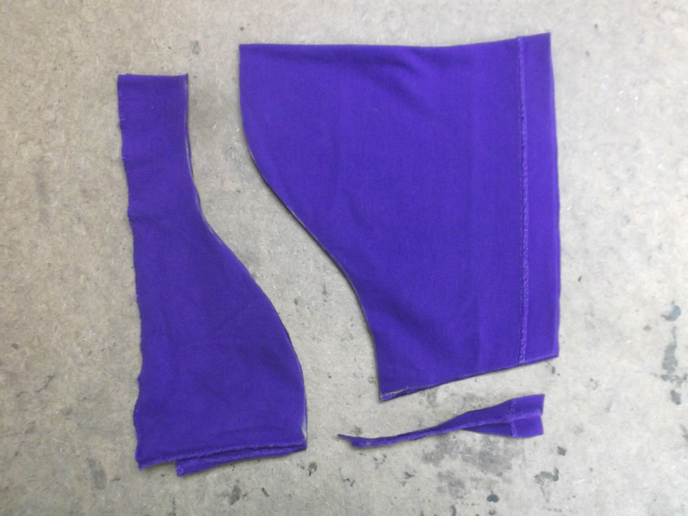 9枚目はTシャツの胴体の肩幅、身幅、裾幅、着丈を見本のサイズ感に合わせてカットした胴体の写真です。
