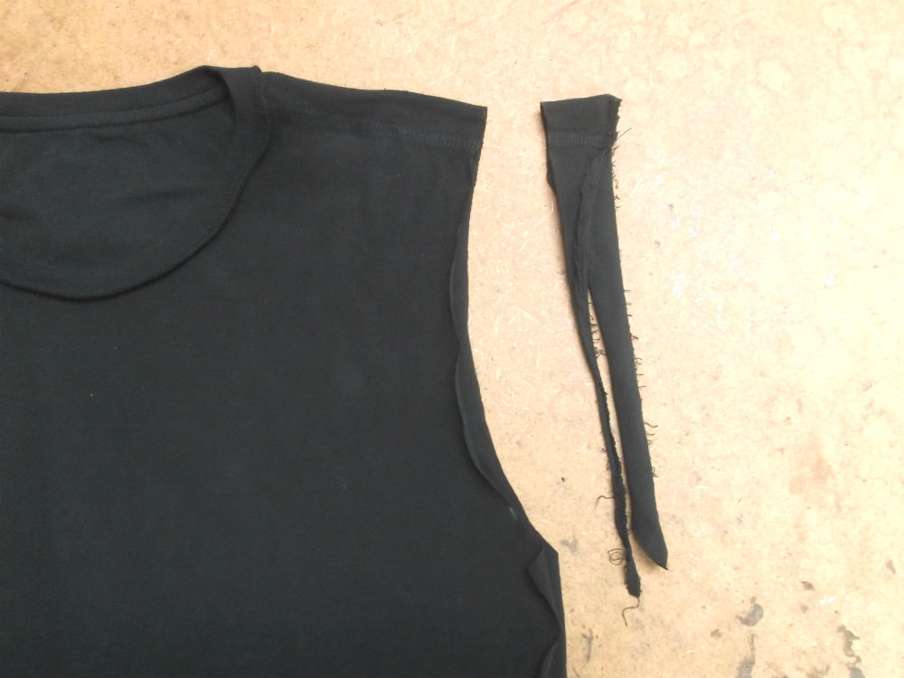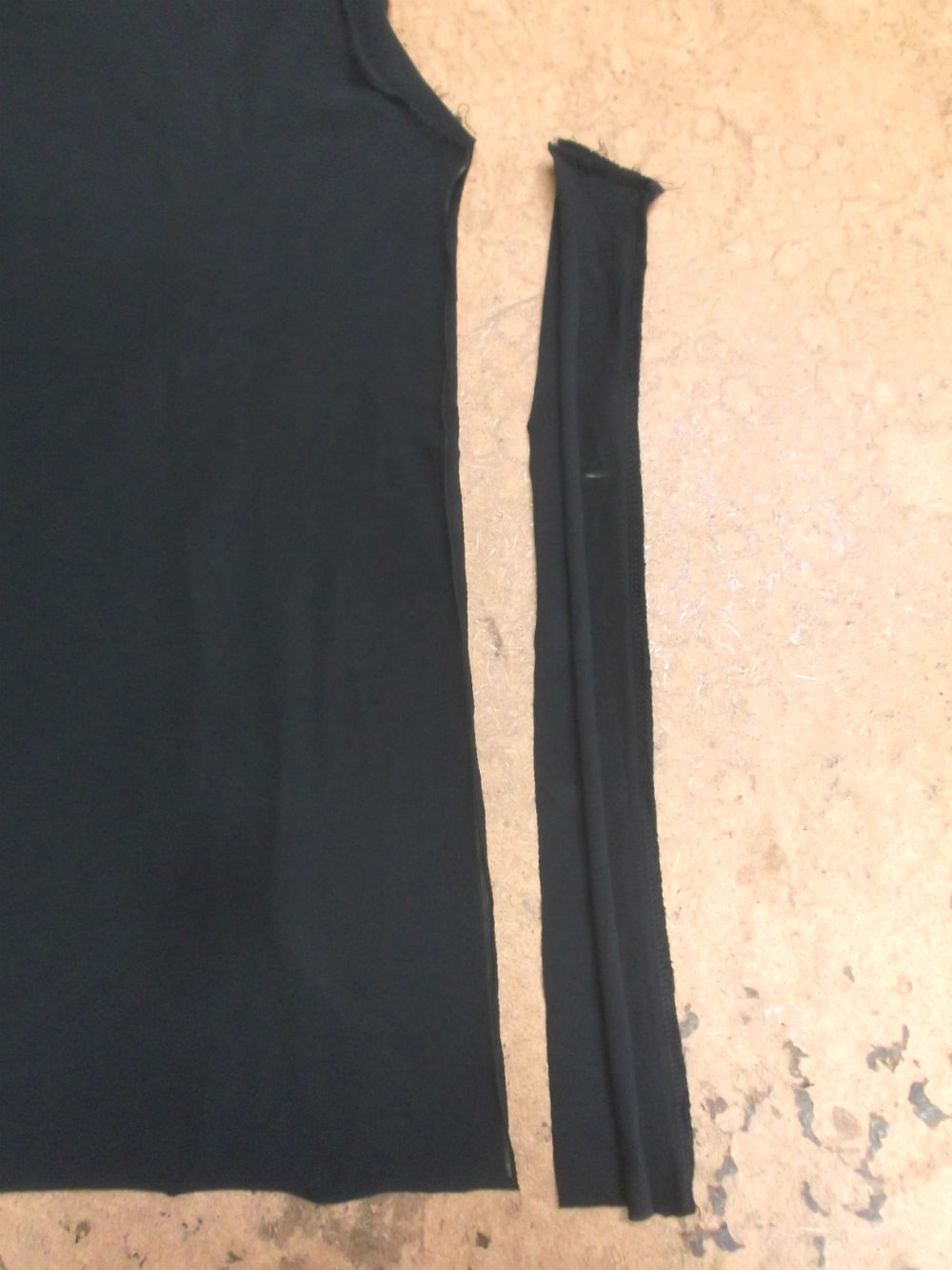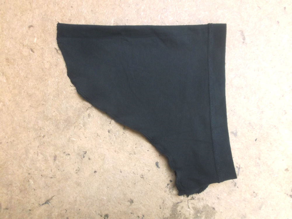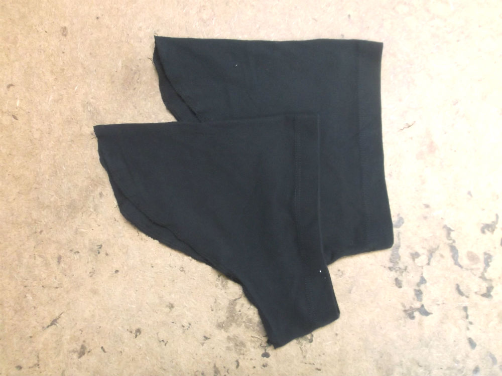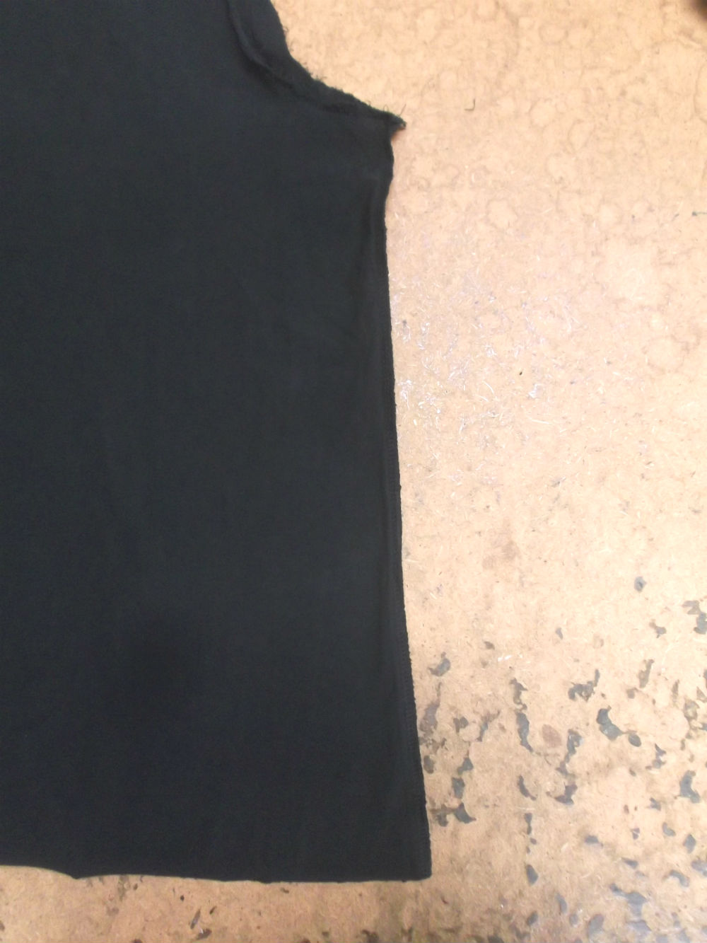 8枚目はTシャツの胴体の肩幅、身幅、裾幅、着丈を見本の幅に合わせて生地をカットした後です。