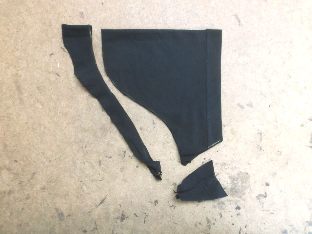 11枚目は袖のパーツの生地を見本の幅に合わせてカットした後の写真です。