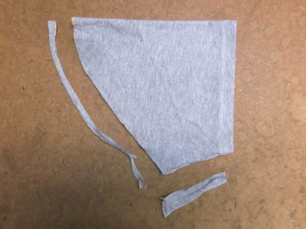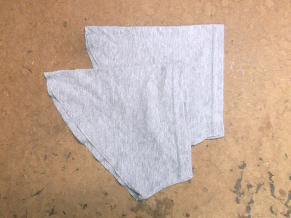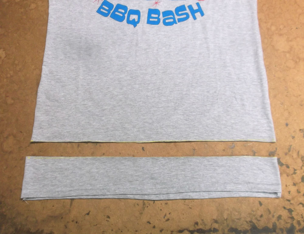 5枚目はTシャツの胴体の脇から裾のサイドの生地を見本の幅に合わせてカットした後の写真です。