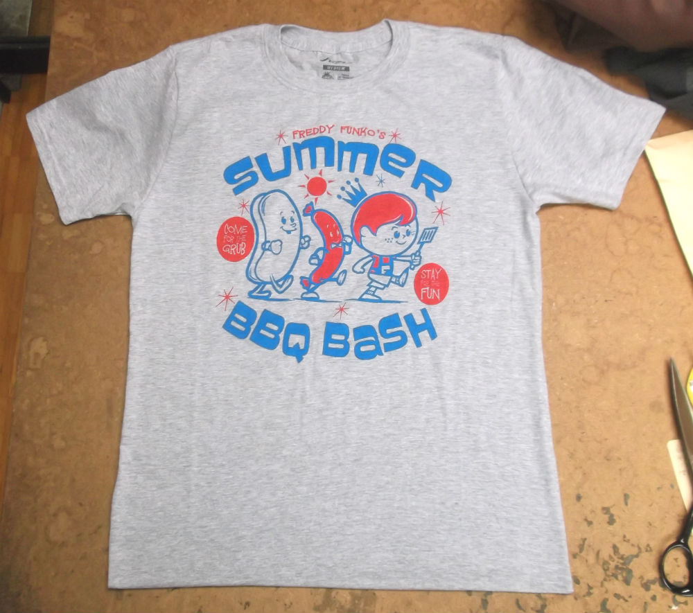 プリントの気に入ってる大きいサイズのTシャツをお客さんの気に入ったサイズのTシャツを見本にお借りして小さくリサイズしていきます。