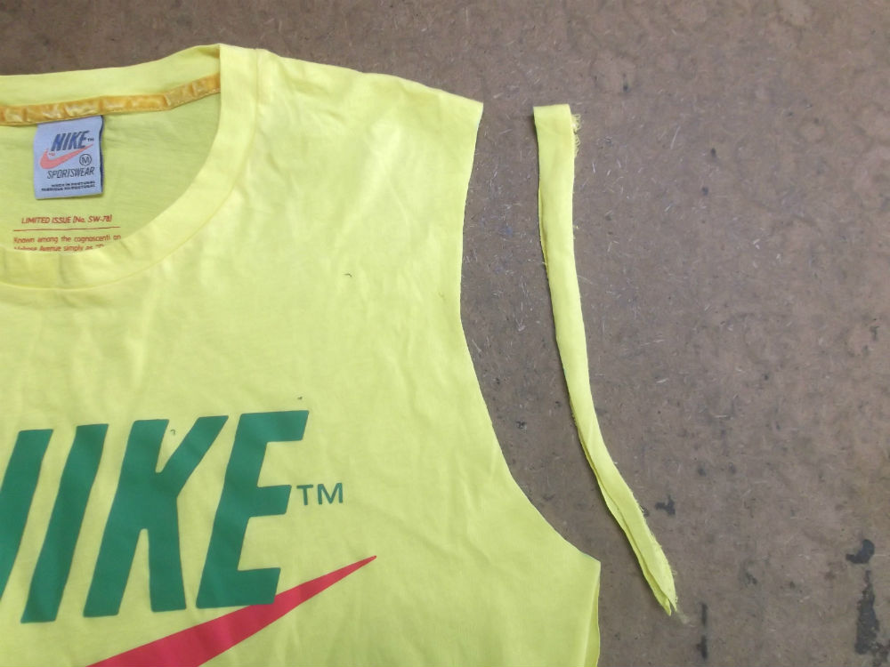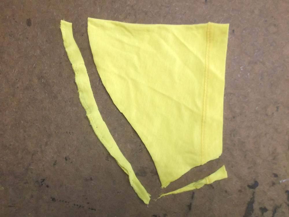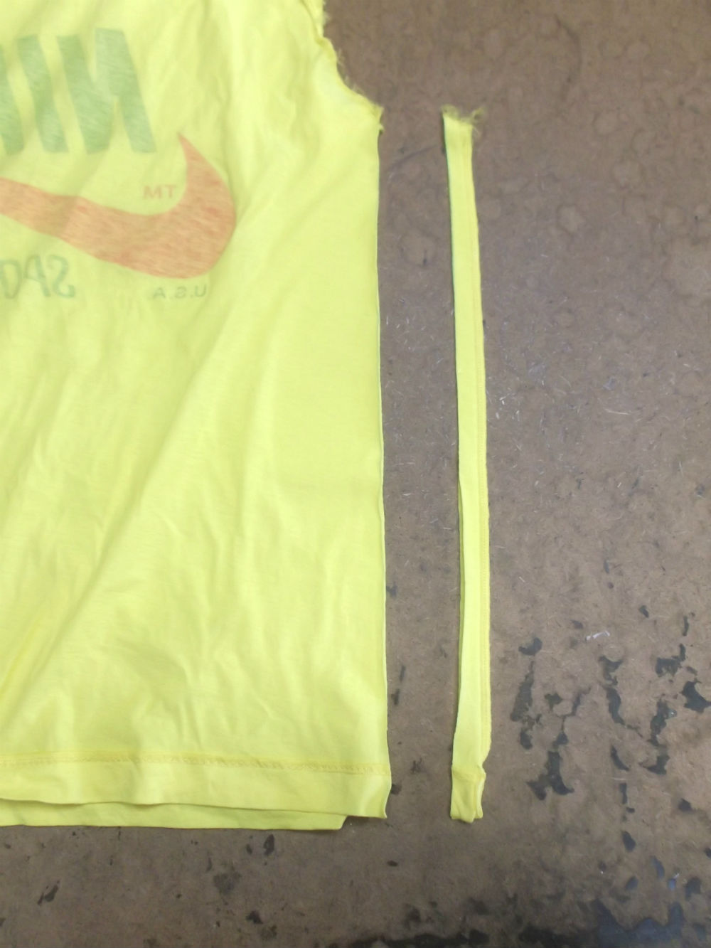 3枚目はサイズダウンをしていく前の左右の袖のパーツを外した後のTシャツの胴体です。
