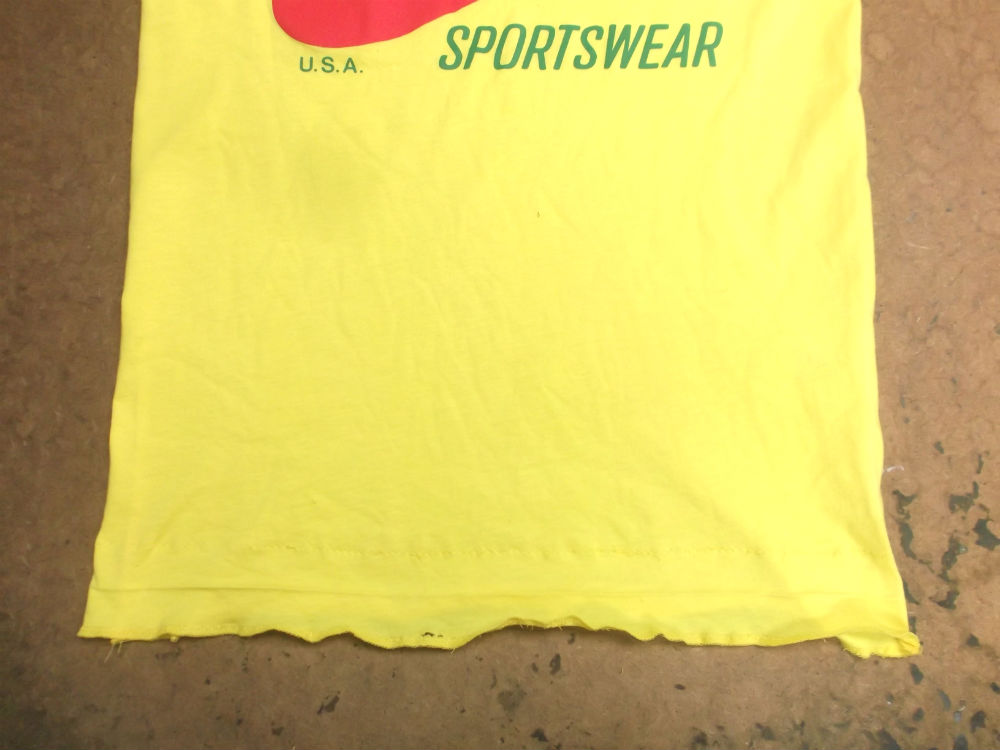 13枚目は長い着丈を見本のTシャツの長さに合う様に裾の生地をカットした後の写真です。