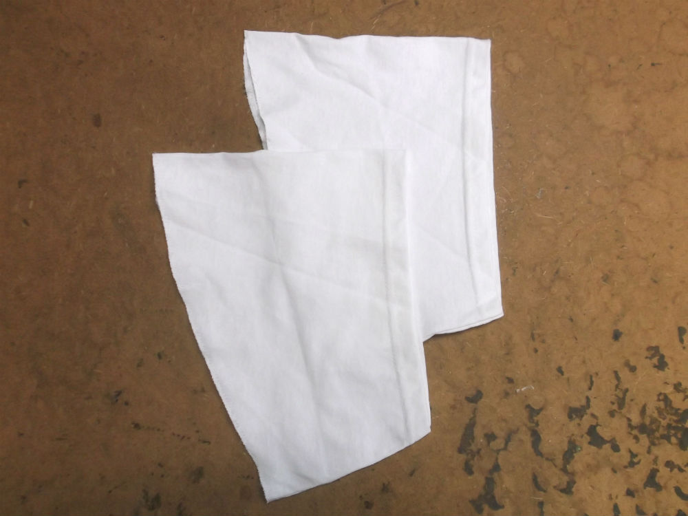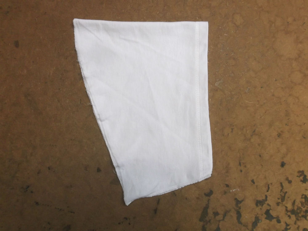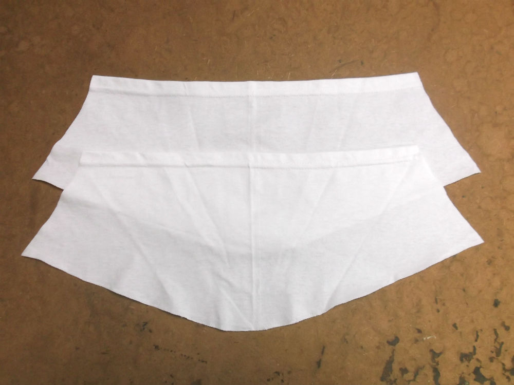 10枚目は大きいTシャツの胴体の肩幅、身幅、裾幅、着丈の生地を見本の幅に合う様にカットした後の写真です。