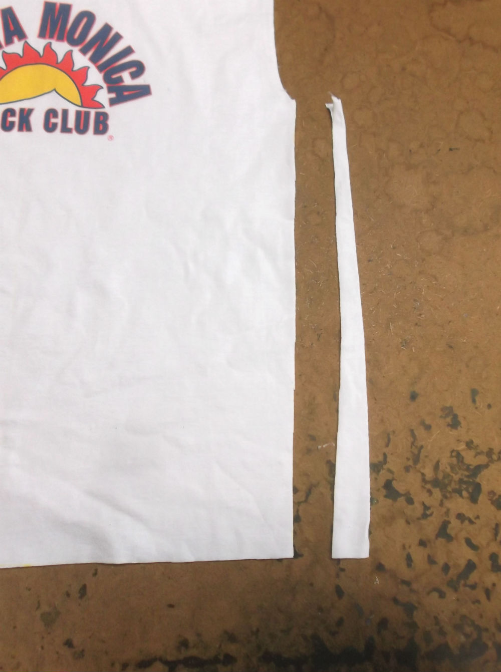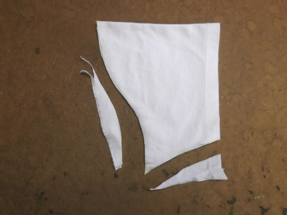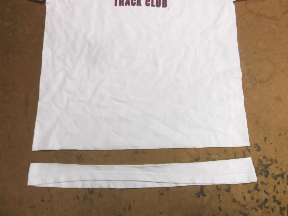 10枚目はTシャツの胴体の肩幅、身幅、裾幅、着丈の生地をカットした後の写真です。