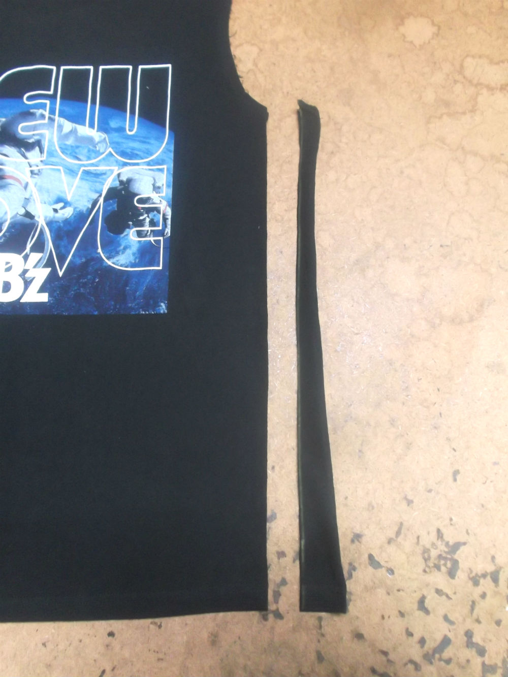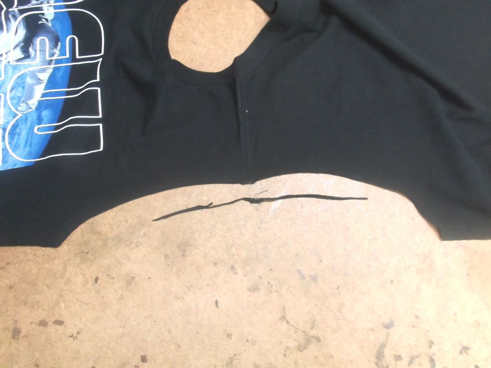3枚目はTシャツの胴体を小さくしていくのに左右の袖のパーツを外した後の写真です。