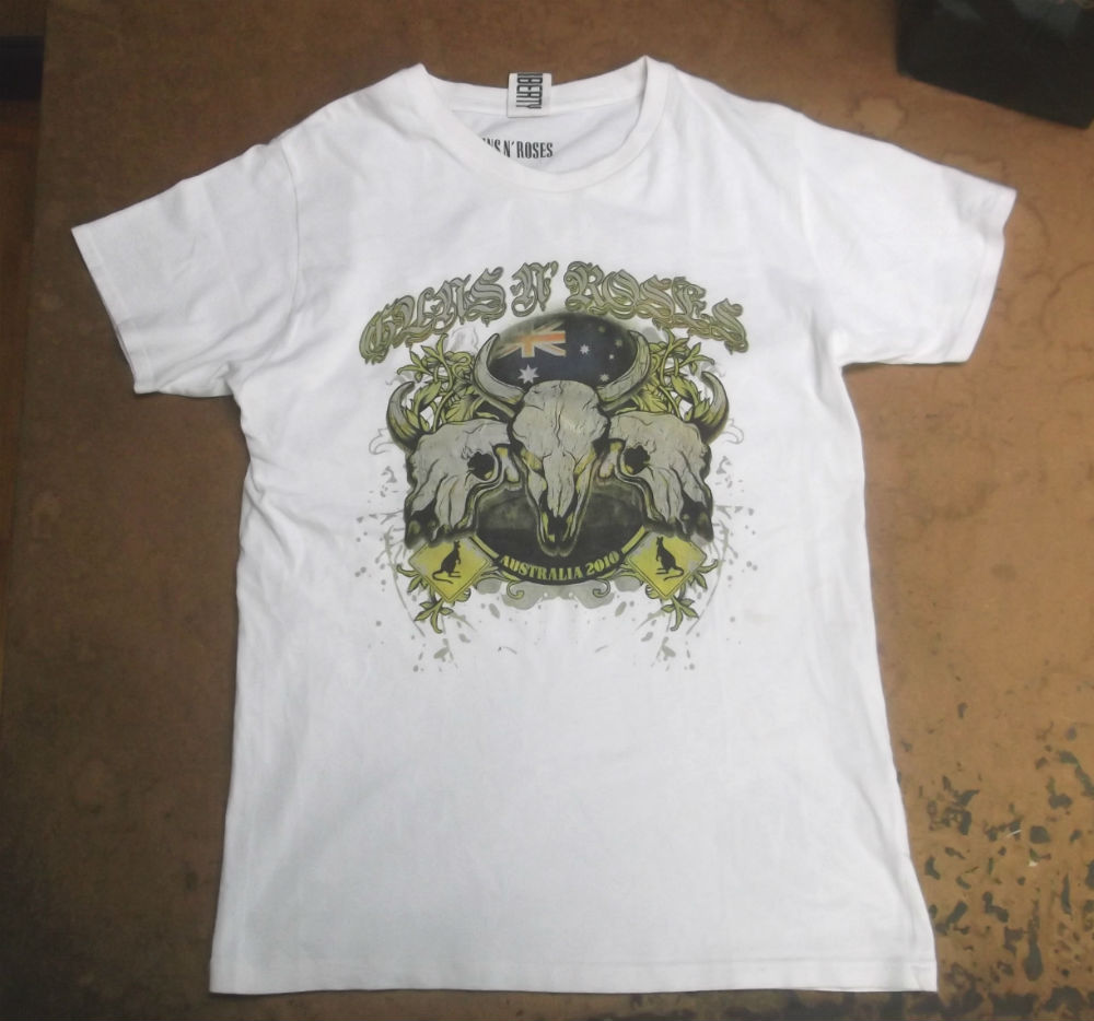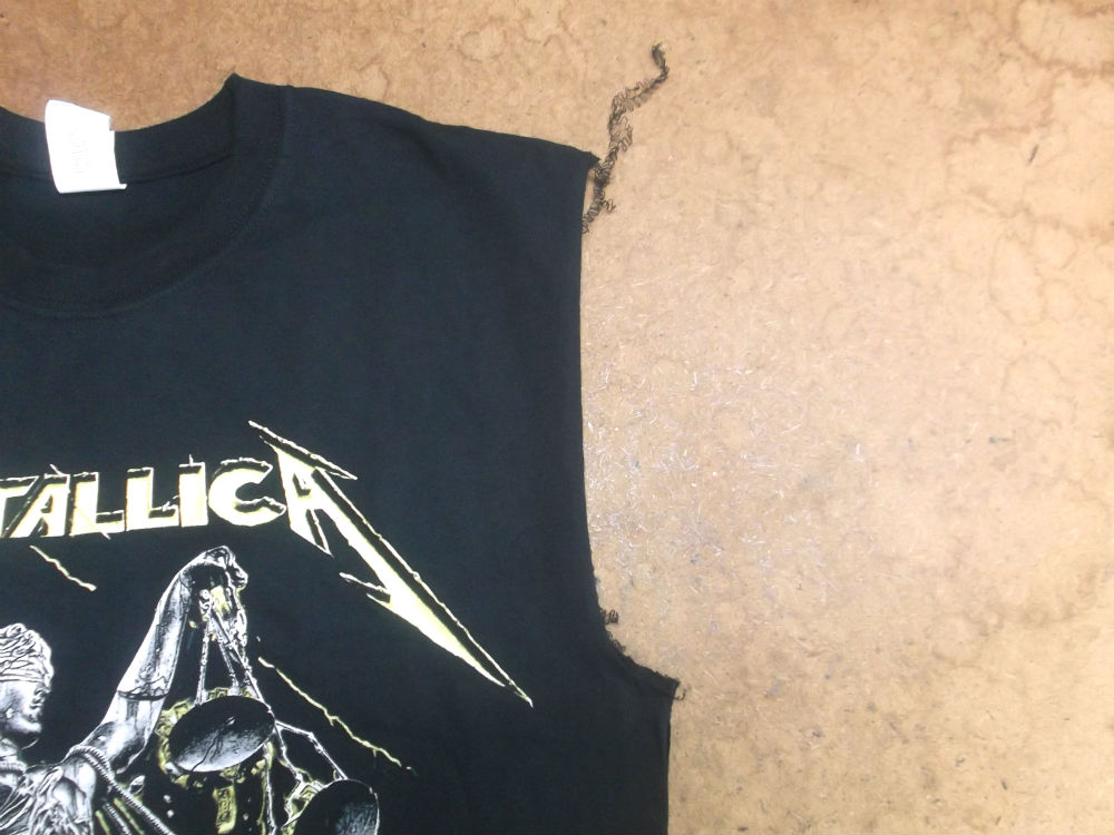 気に入ったプリントのバンドTをお客さんの好みのサイズのTシャツをお借りして小さくリサイズしていきます。