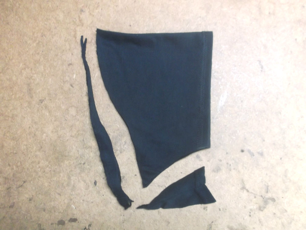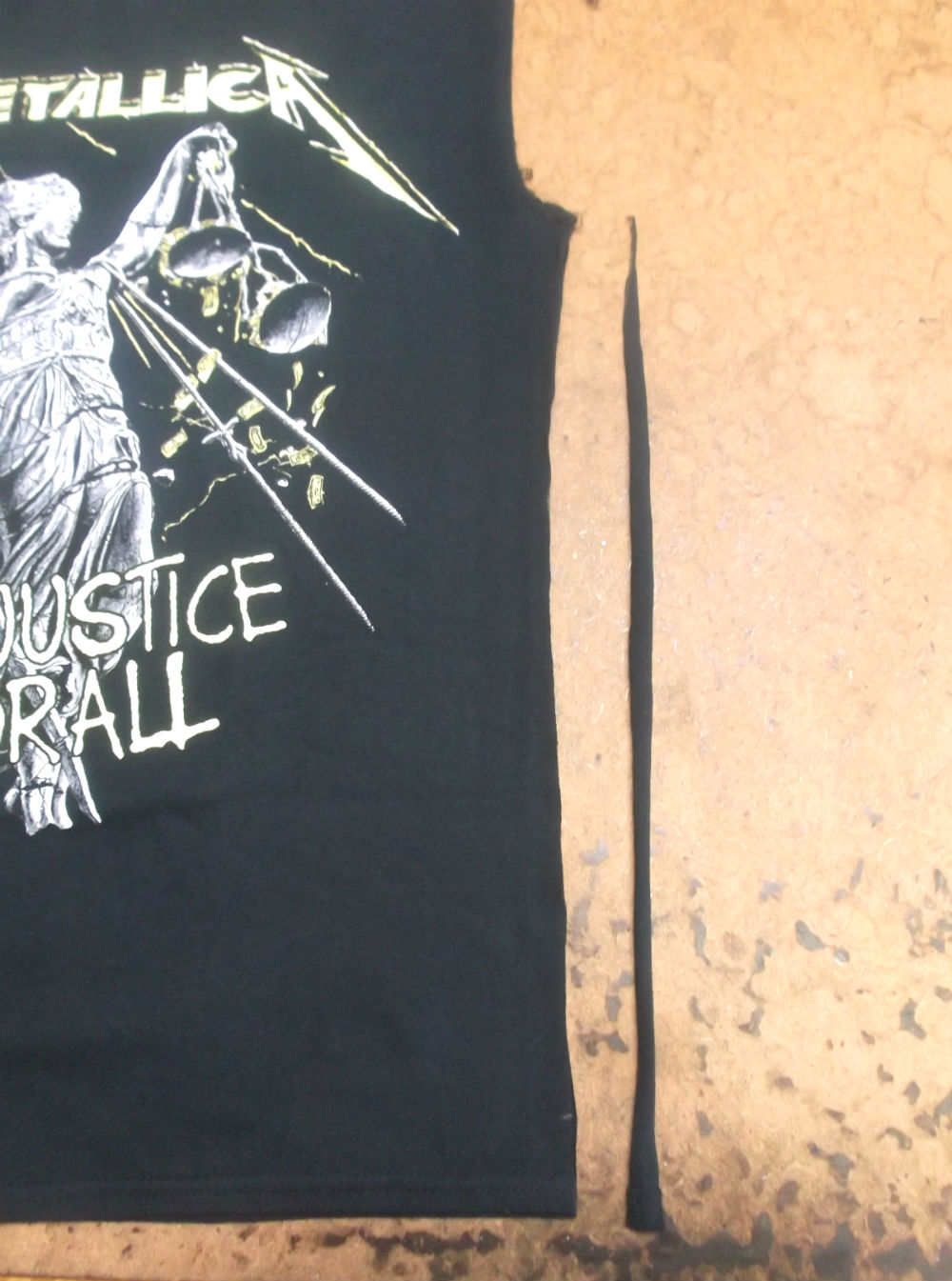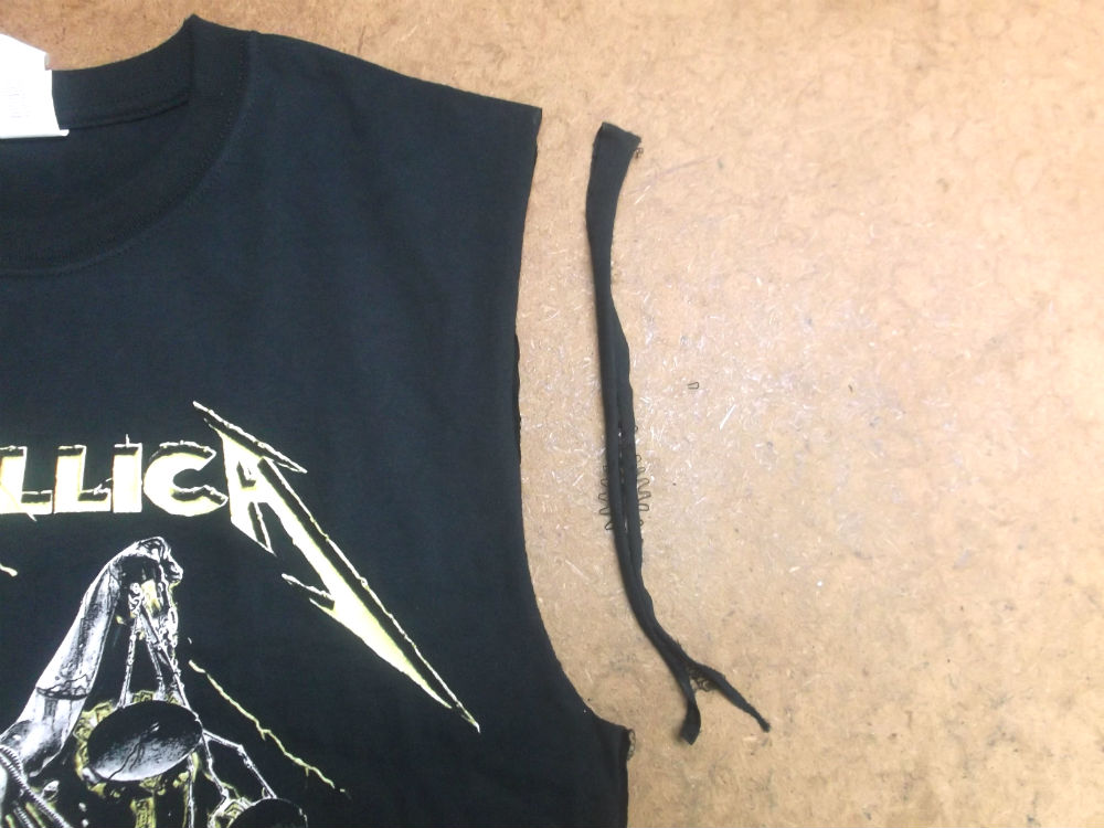 5枚目はTシャツのサイドの脇から裾のサイドの生地をカットした後の写真です。