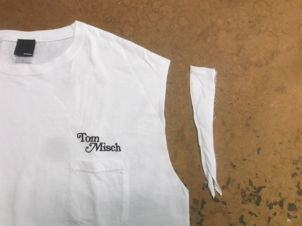 大きいサイズのTシャツを小さく直していきます。今回は東京都から…