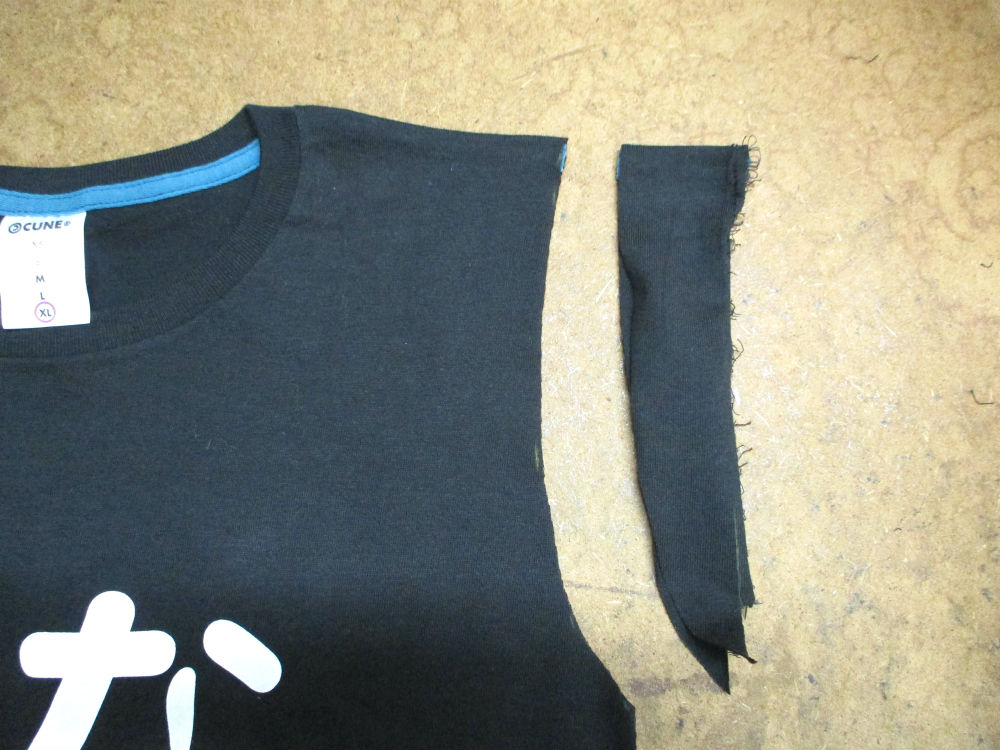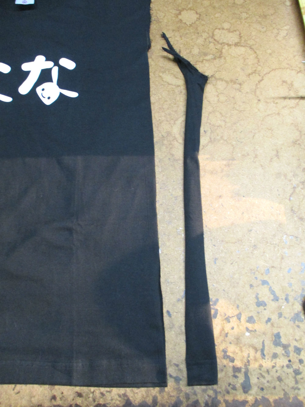 8枚目はTシャツの胴体の着丈以外の肩幅、身幅、裾幅の生地をカットした後です。