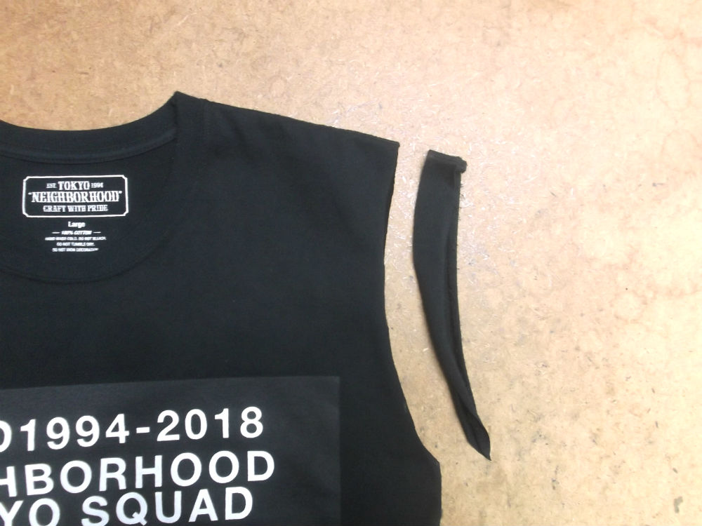 Tシャツのサイズダウンで作業が出来ない位置は首周りを大きくしたり小さくしたりは出来ません。