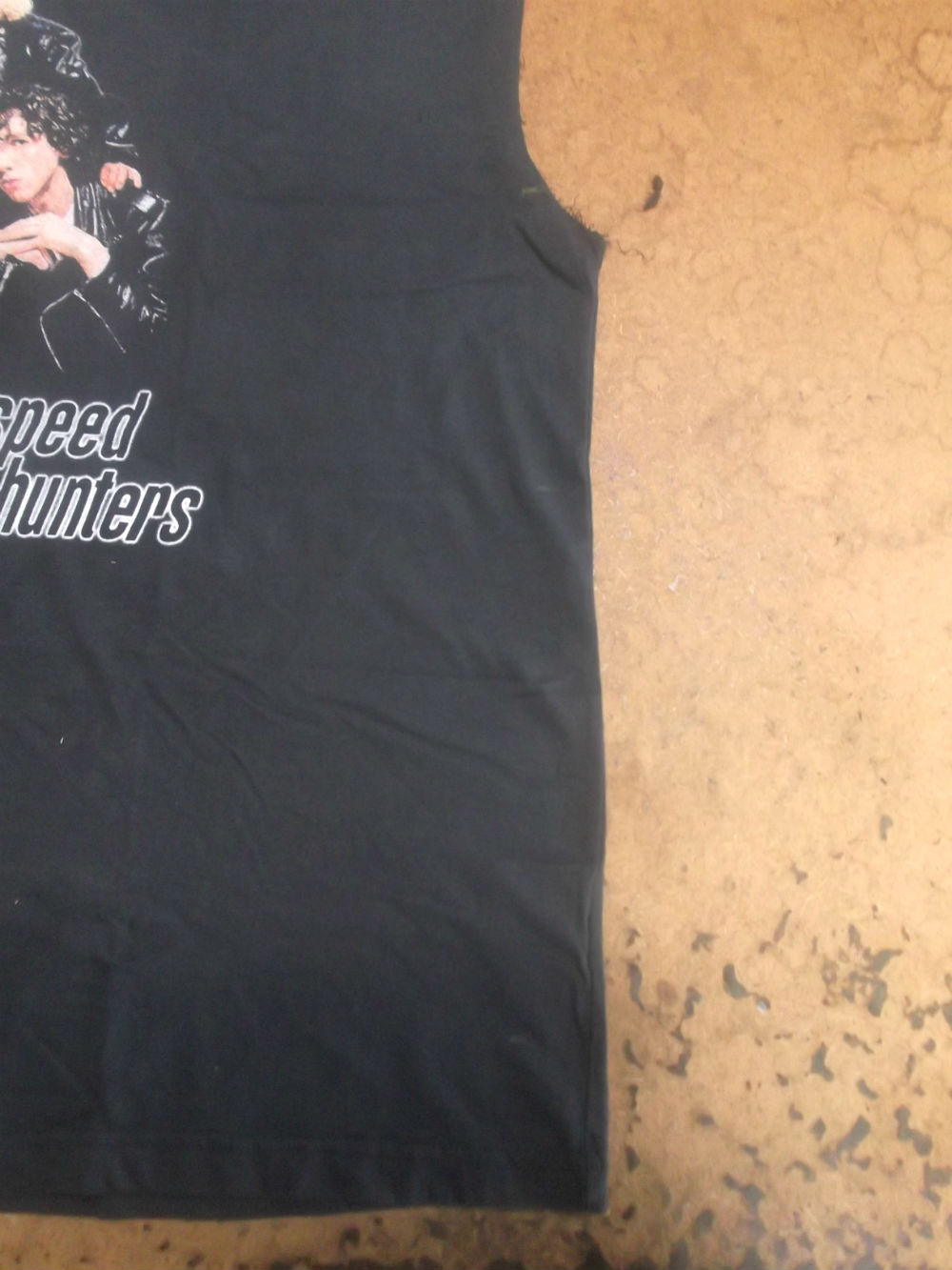 8枚目はTシャツの胴体の着丈以外の肩幅、身幅、裾幅の生地をカットした写真です。