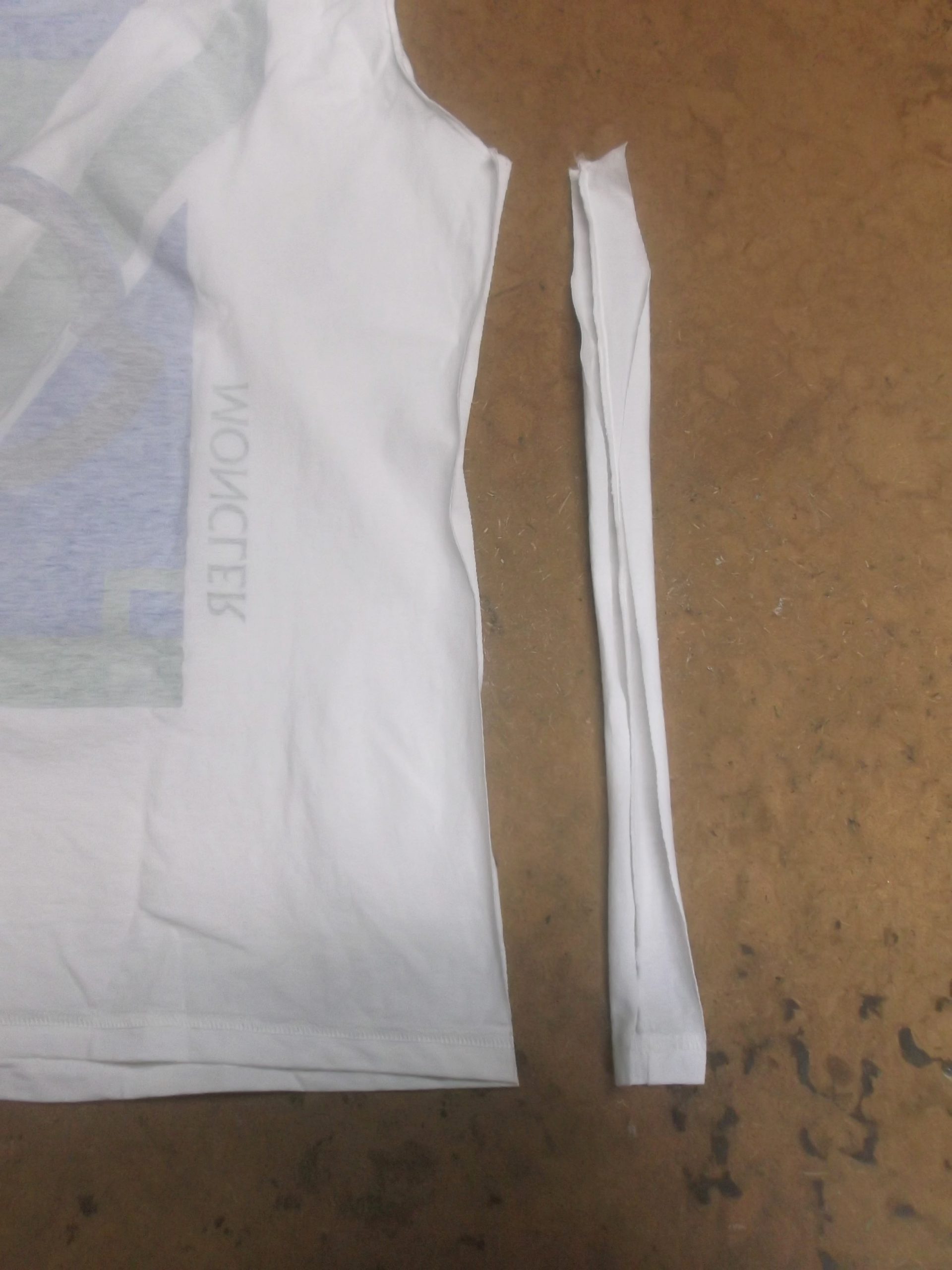 3枚目は左右の袖のパーツを外したTシャツの胴体の写真です。
