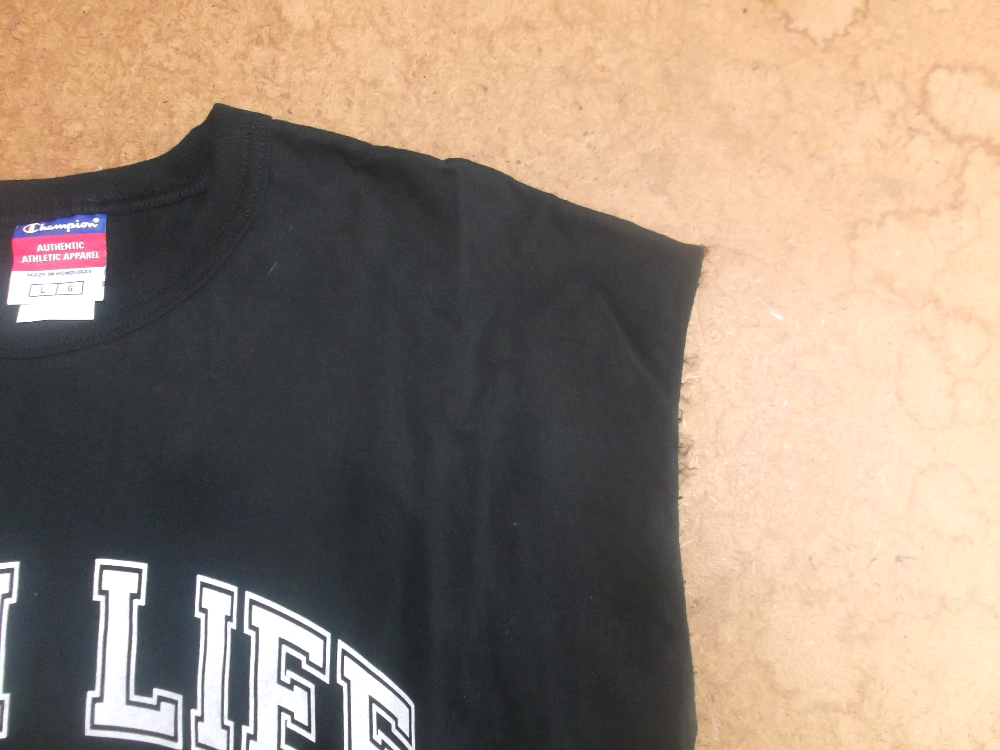 プリントの気に入ってるチャンピオンの大きいサイズのTシャツをお客さんの気に入ったサイズのTシャツを見本でお借りして小さくリサイズしていきます。