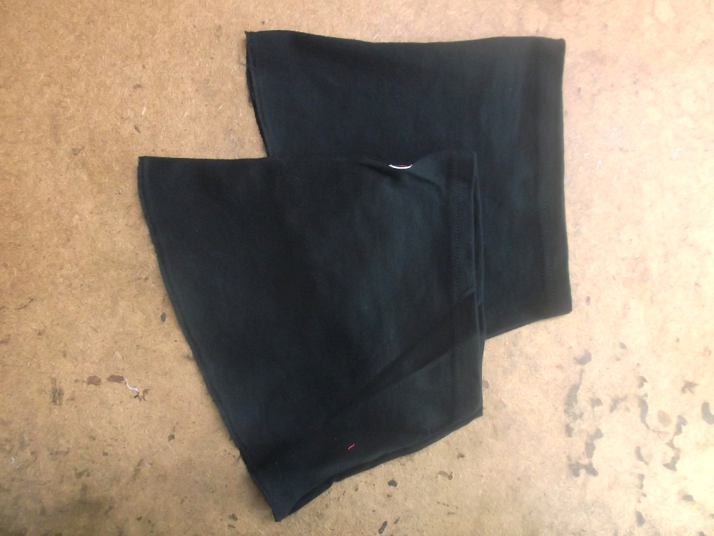 この肩幅、身幅、裾幅、袖幅、袖丈、着丈を測って大きいサイズのTシャツを小さくしていきます。