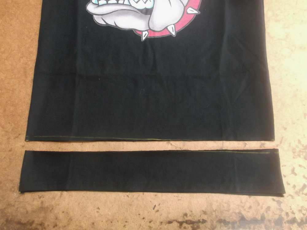 プリントの気に入ってる大きいサイズのTシャツを小さく直していきます。…