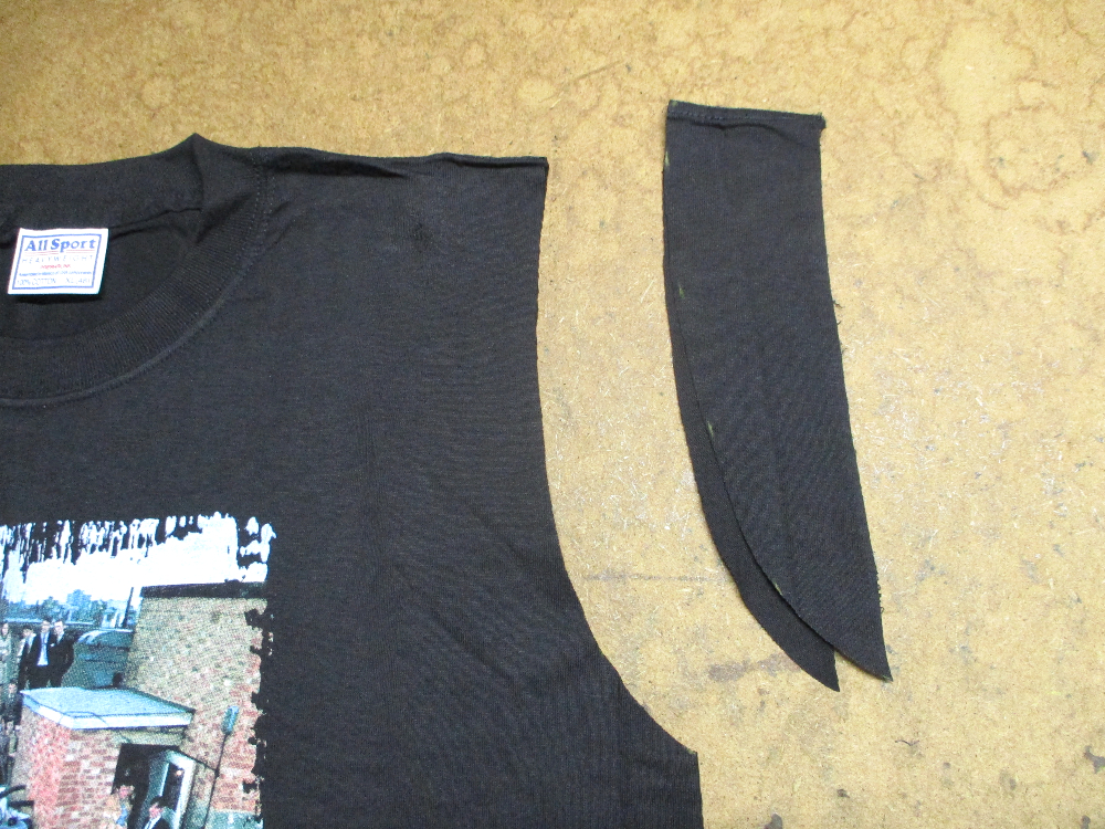 9枚目は見本のTシャツの幅に合わせて袖幅、袖丈をカットしていきます。